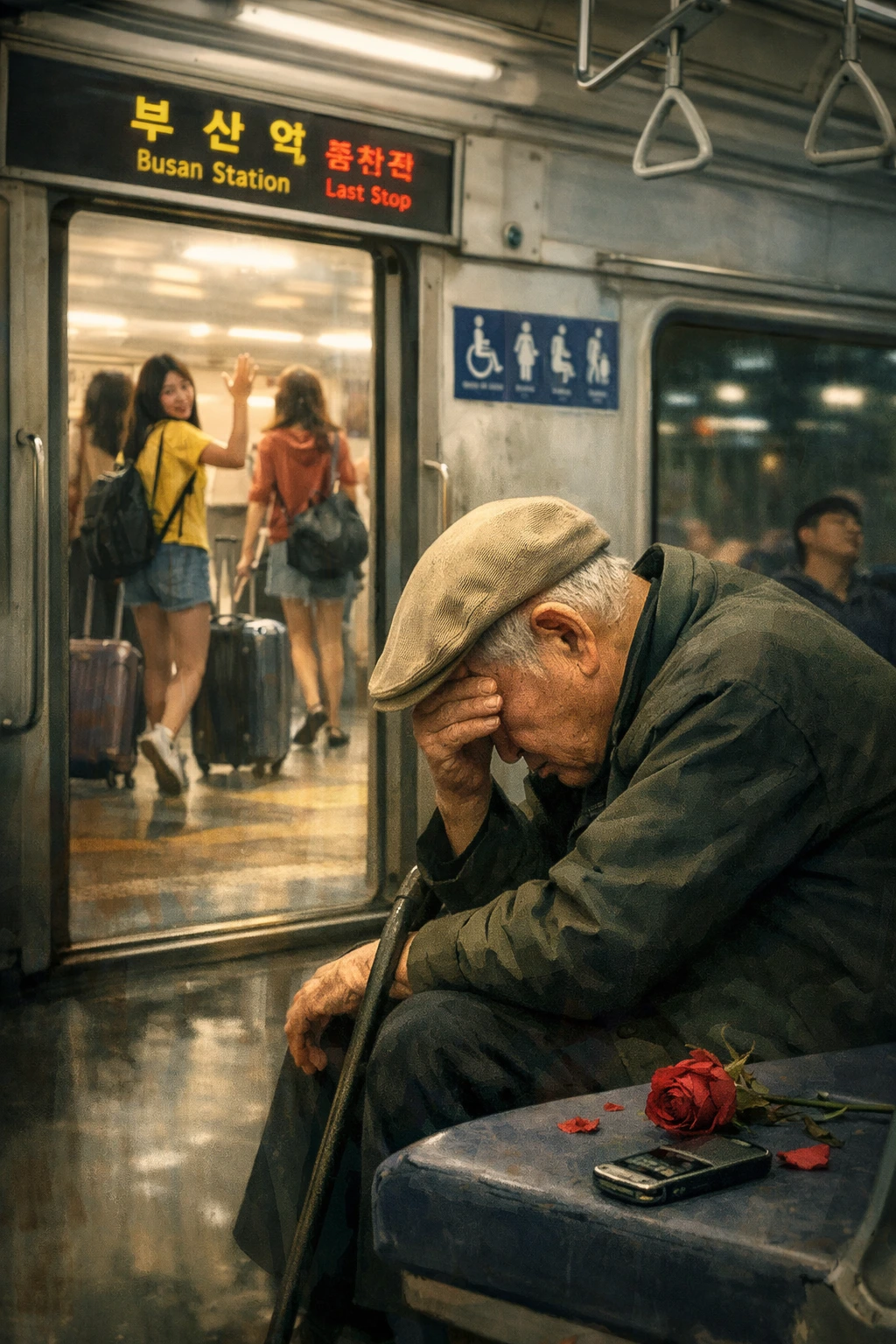 78세의 노인이 지하철 노약자 좌석에 앉아 어딘가로 가고 있었다.