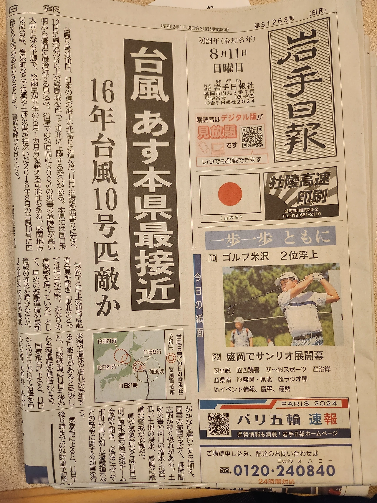 그런데 여행의 일정에 차질이 생겼다. 태풍 5호가 이와테에 온다는 것이다.