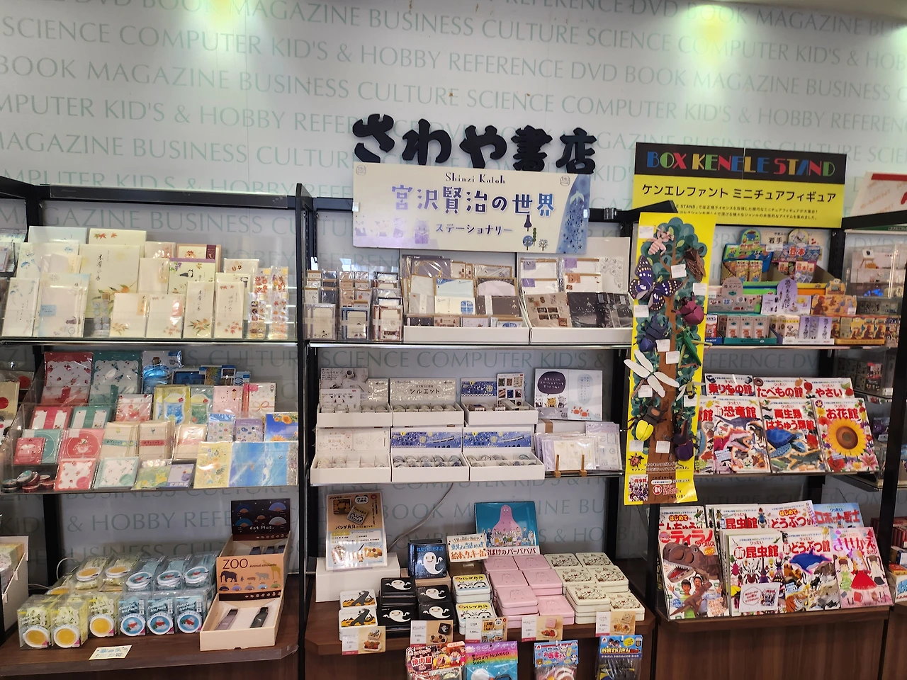사와야서점 페잔점. 이와테 출신의 시인 미야자와 겐지와 관련된 굿즈를 판매하고 있다.