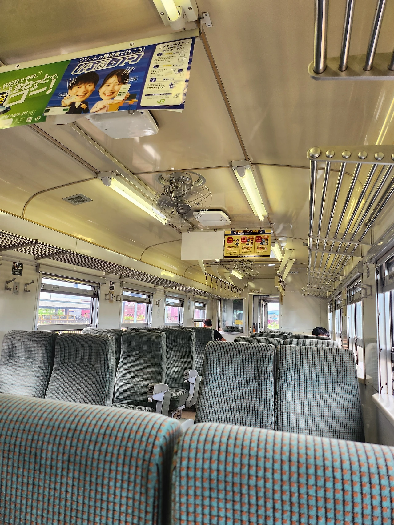 3시에 왓카나이행 전철을 탔다. 에어컨 대신에 천장에 선풍기가 돌고 있고, 창문이 열려 있다.