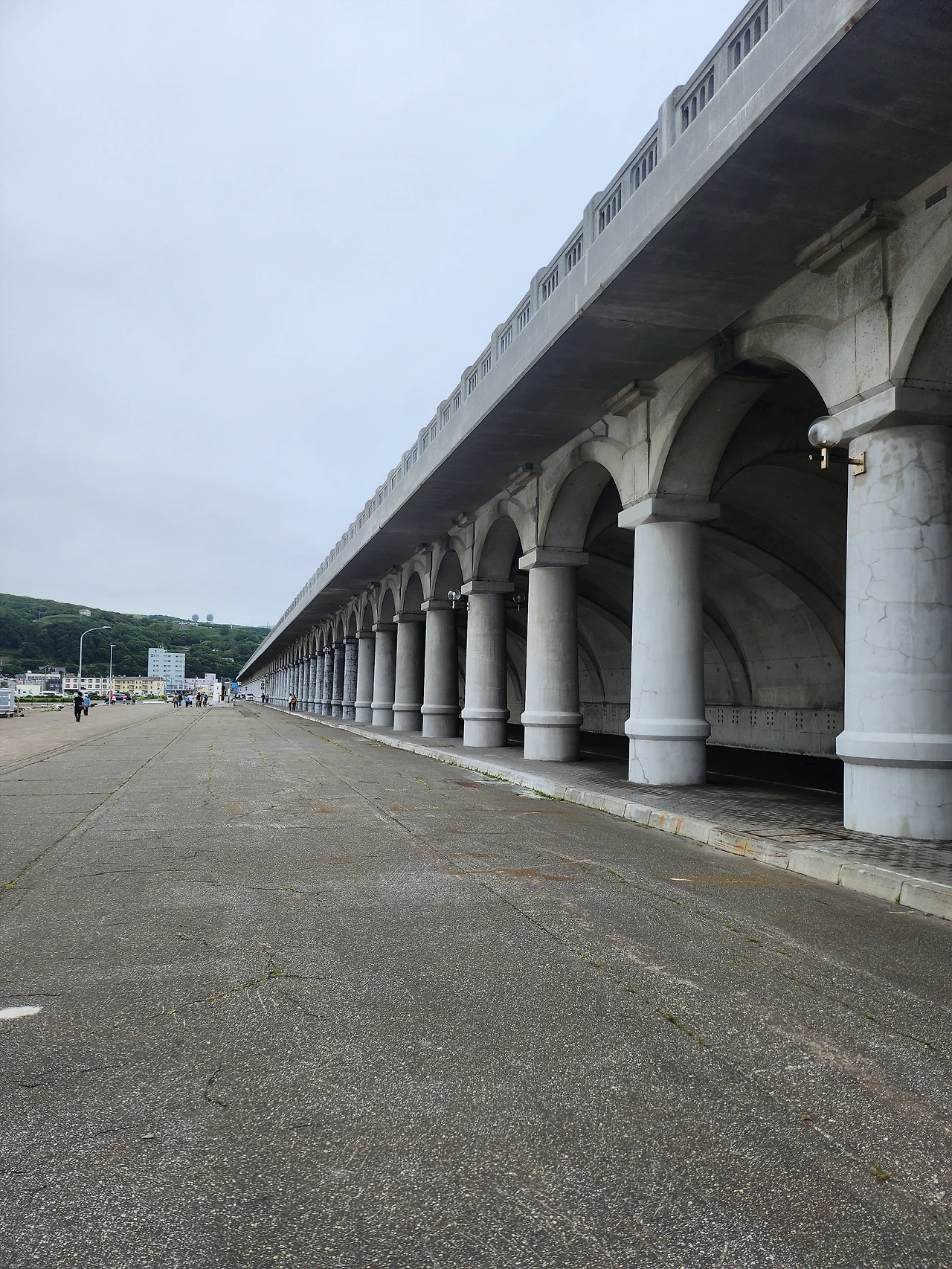 일단 호텔 앞의 북방 방파제 돔을 둘러보았다. 1945년까지만 해도 여기에는 기차역과 연결된 항구가 있었다고 한다. 역에서 내려서 바로 당시 일본령이던 사할린으로 향하는 배를 탈 수 있었다고 한다.