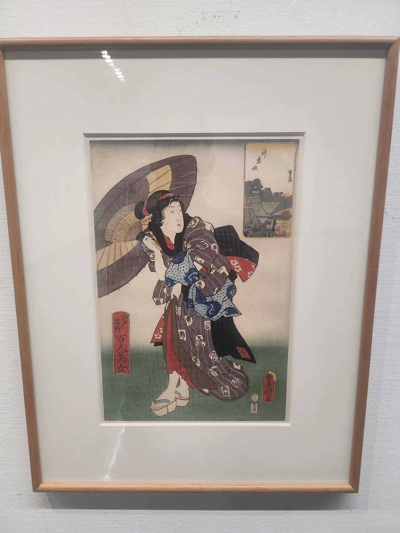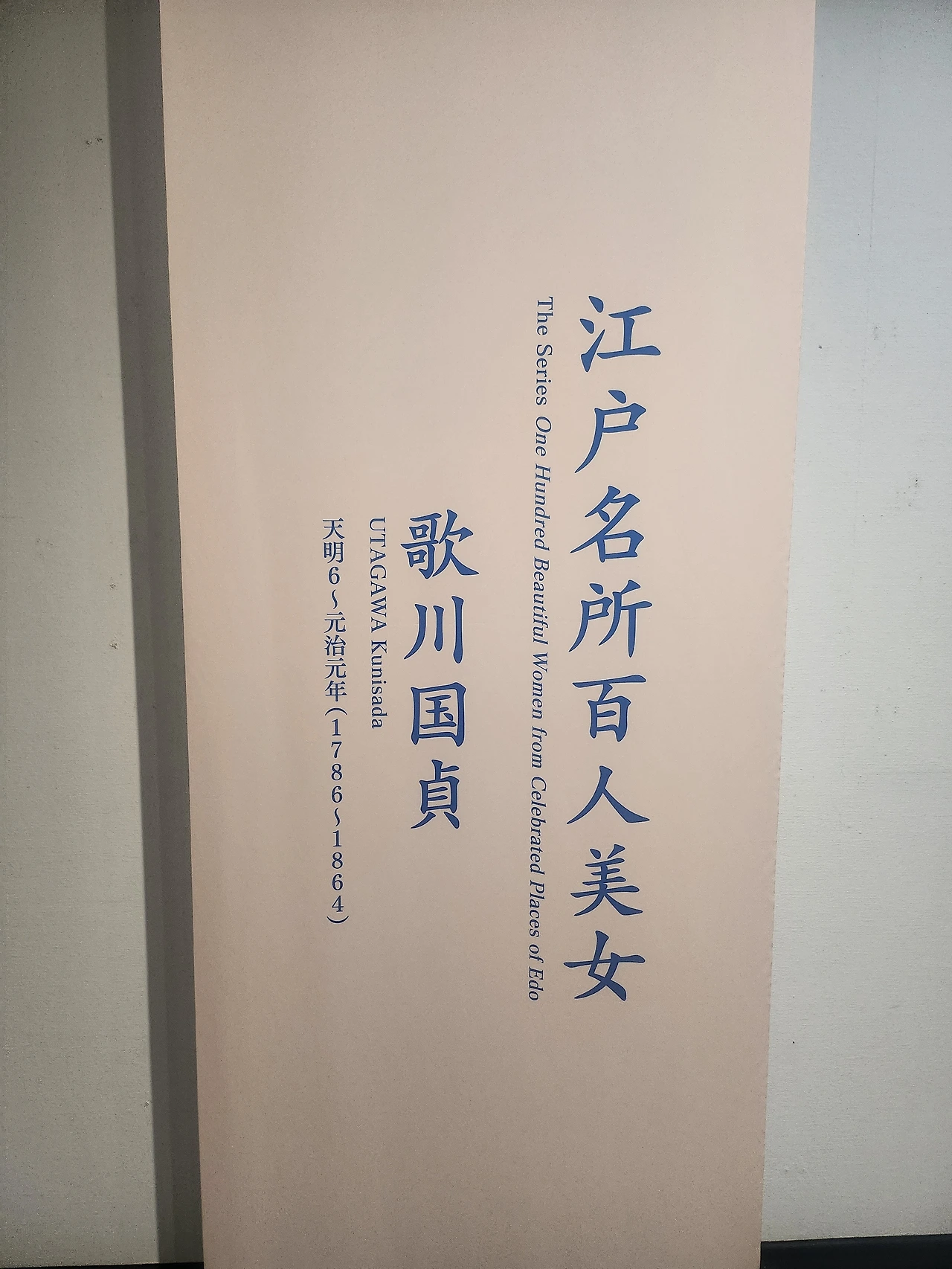 우타가와 구니사다(歌川国貞)의 <에도명소백인미녀(江戸名所百人美女)> 전시회도 하고 있었다. 우타가와 구니사다는 에도시대의 우키요에(浮世絵) 화가였다. 에도의 명소 백 곳을 배경으로 미인 백 명의 우키요에를 그린 시리즈다. 이것도 근대는 아닌데?