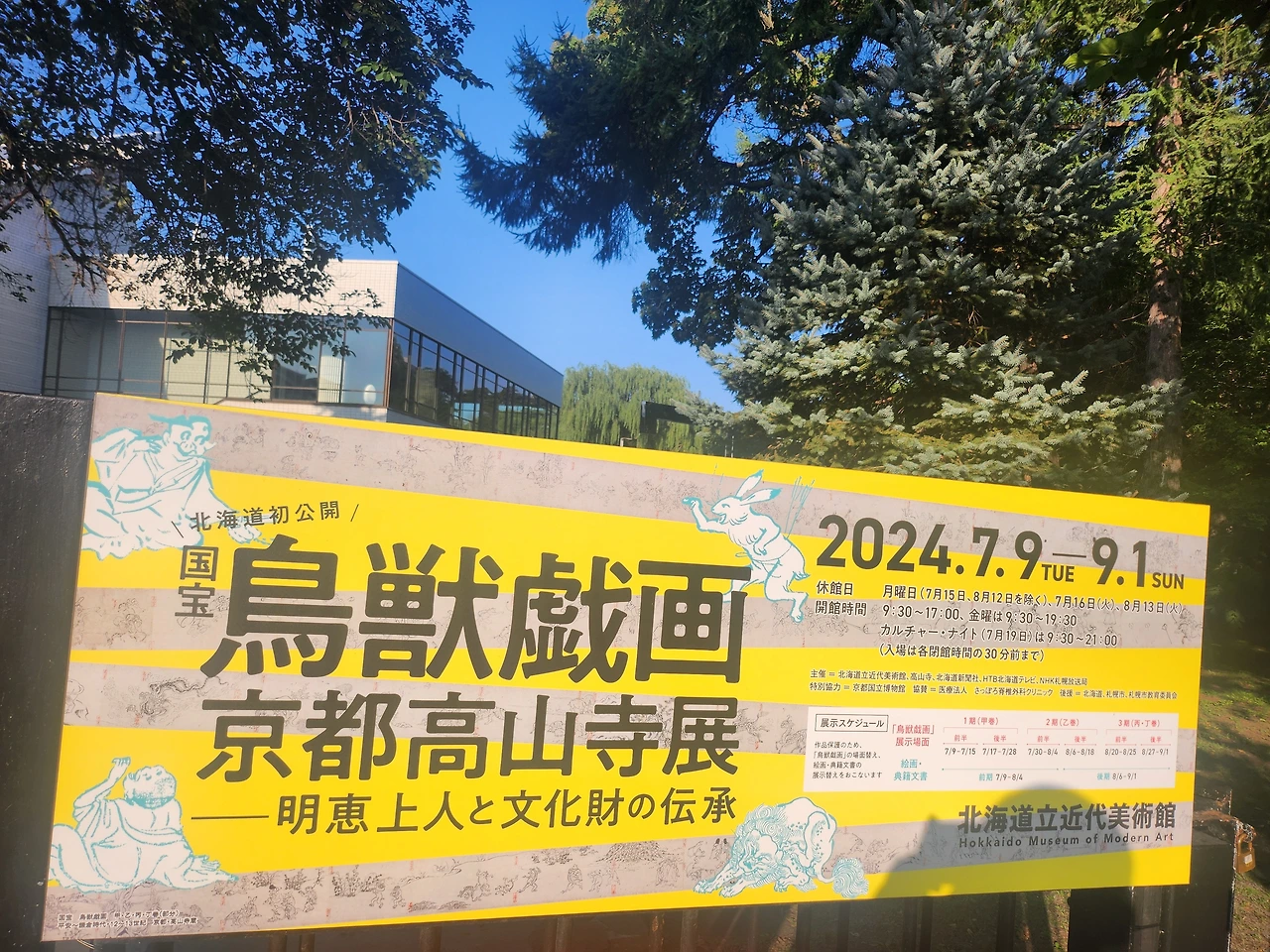 미야노사와에서 다시 지하철을 타고 니시 28초 메(西18丁目) 역에서 내려서 홋카이도 도립 근대미술관에 갔다. 고잔지(高山寺)에 있는 조수희화(鳥獣戯画)가 홋카이도에서 처음 전시된다고 한다. 조수희화는 토끼와 개구리, 원숭이의 익살스러운 모습으로 유명한 그림이다. 번호표를 뽑아서 20분 정도 기다려야 할 정도로 사람이 많았다.