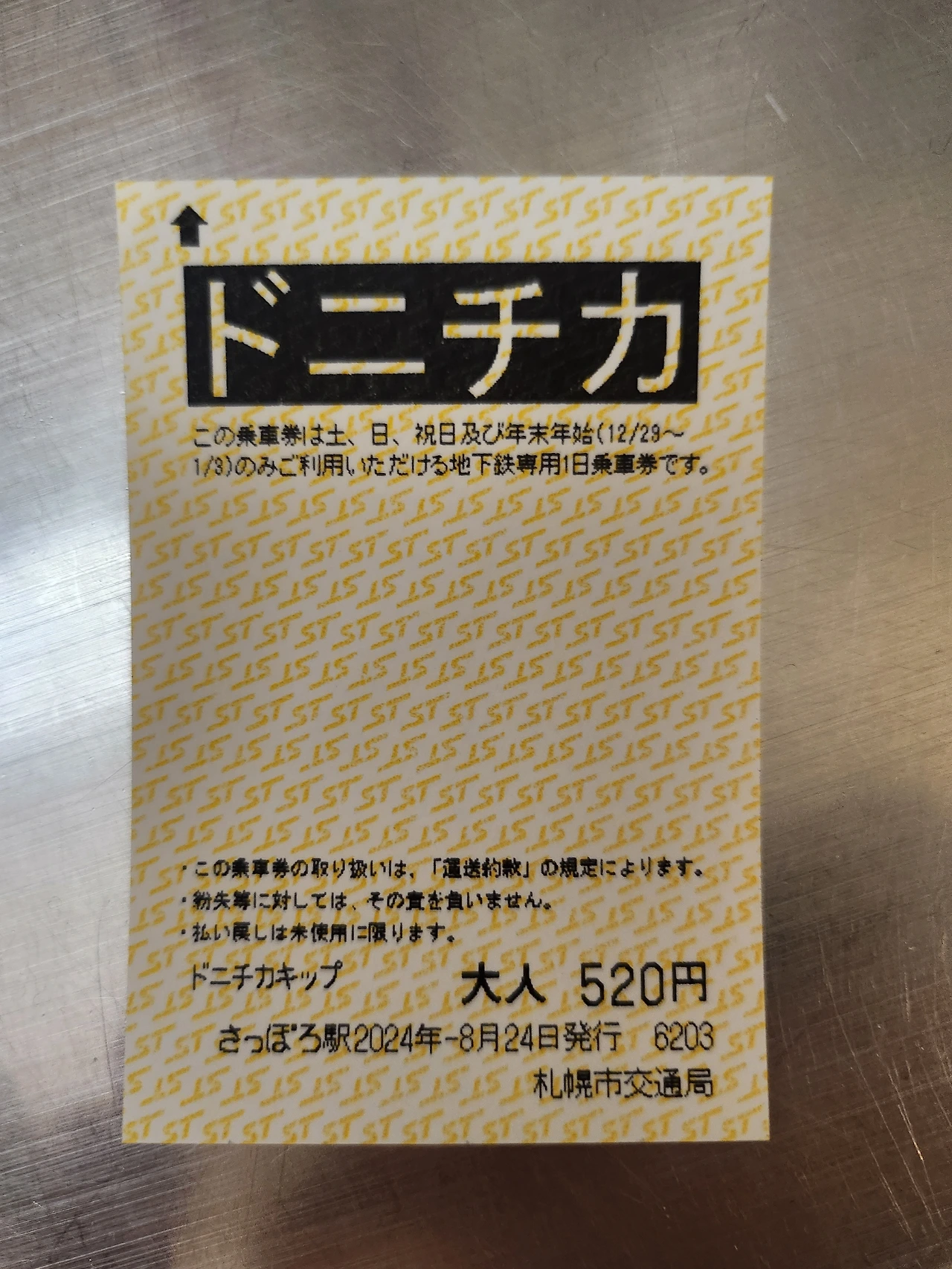이날은 삿포로 지하철을 타고 미야노사와(宮の沢) 역으로 향했다. 삿포로 지하철 1일 승차권은 평일 요금은 830엔, 토일요일은 520엔이다. 대체로 평일 요금보다 토일요일 요금이 비싸기 마련인데 지하철의 경우는 평일이 출퇴근 이용자가 많은 탓에 토일요일 요금이 더 싼 것이다.