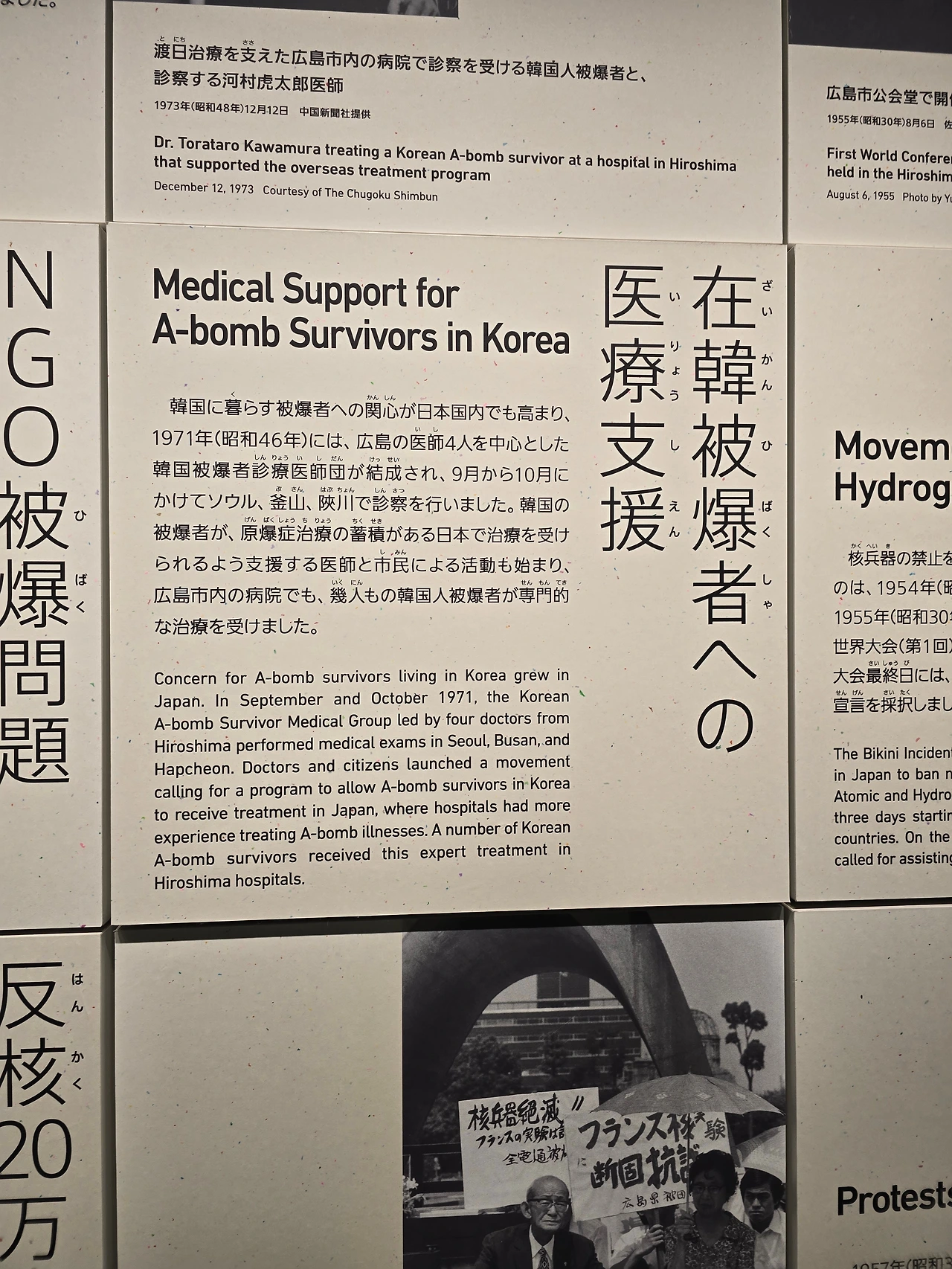 내가 방문했을 때는 2024년 노벨 평화상을 수상한 피폭자 단체 협의회의 뉴스가 아직 핫한 시기였다. 제2차 세계대전 당시 일본의 문제와는 별개로 핵무기를 사용한 전쟁이 두 번 일어나서는 안 된다고 느꼈다.