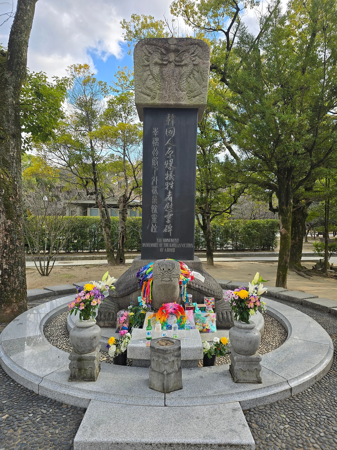 평화공원에는 평화자료관 외에 위령비가 있는데 조선인 위령비가 있다.