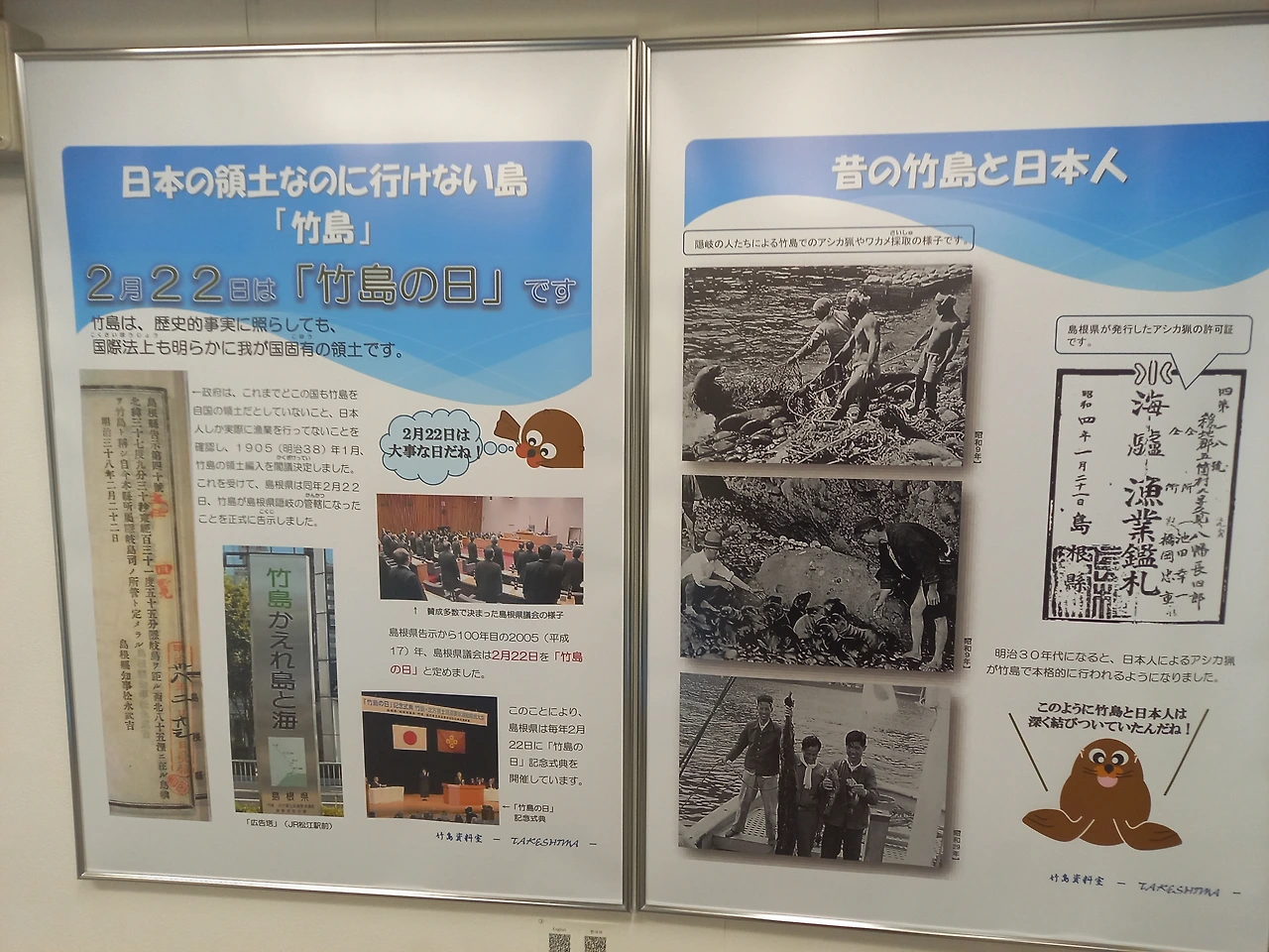 마츠에 성 옆에 시마네현 현청이 있다. 시마네현 현청에 있는 "다케시마 자료실" 간판이 있길래 들어가 보았다. 나무위키에서 보니 경비가 한국인 관광객은 못 가게 막는다고 하던데, 나는 안 막았다. 코로나 때문에 한국 관광객도 안 와서 신경 안 쓰기로 한 듯.