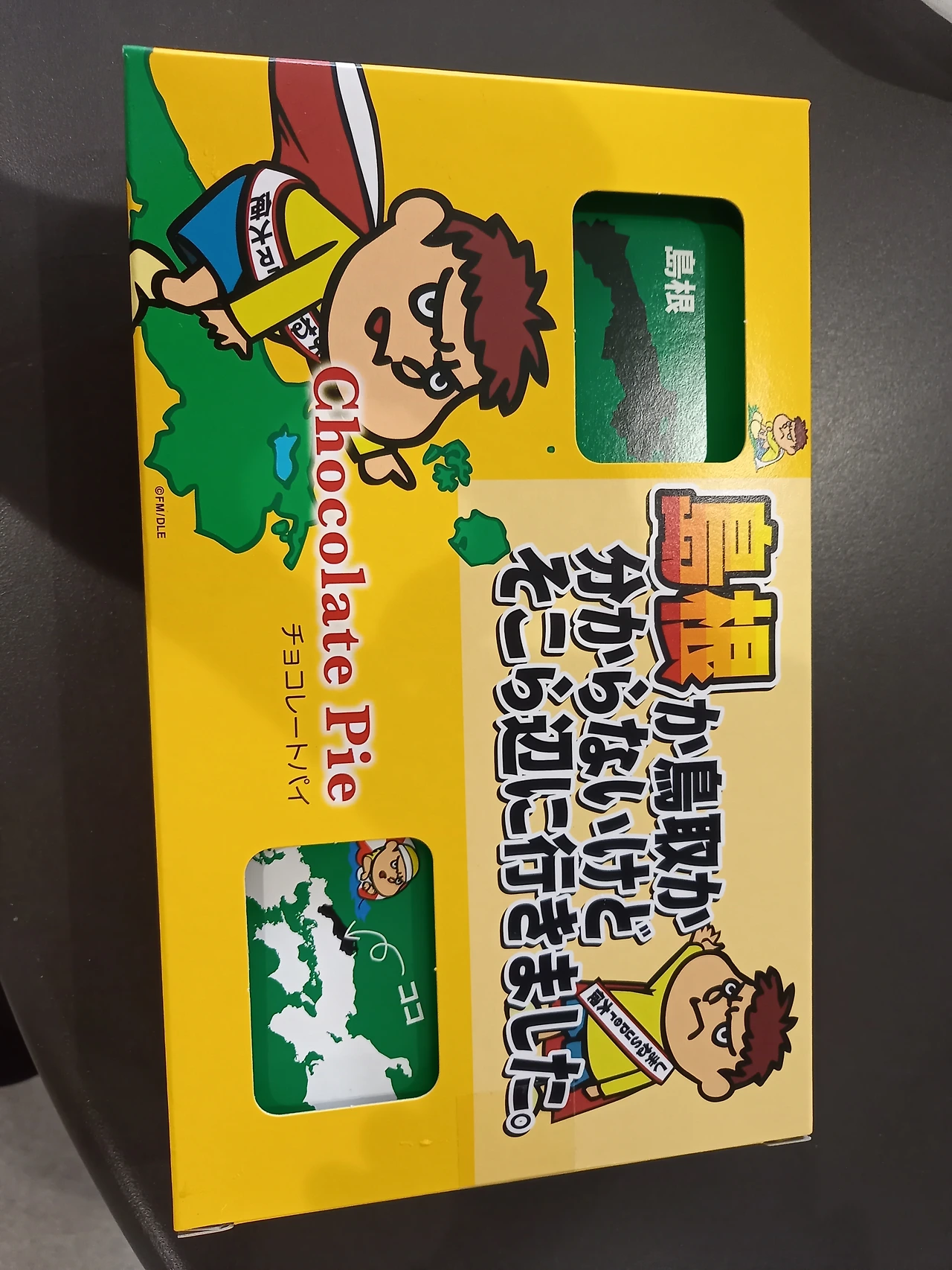 기념으로 시마네에서 파는 초콜릿 과자를 샀는데, 과자 이름이 "시마넨지 돗토린지 모르겠는데 그 근처에 다녀왔습니다."다. 시마네 현은 일본에서도 지명도가 낮은 곳이어서 타 지역 사람들은 옆에 있는 돗토리(鳥取) 현과 헛갈려하는 경우가 많다. 과자 박스에 그려진 캐릭터는 개그 애니메이션 <비밀결사 매의발톱단> 등장인물 '요시다 군'이다. 시마네 현 출신으로 설정되어 있어 애니메이션 속에서 시마네 현에 대한 자학 개그를 펼친다.