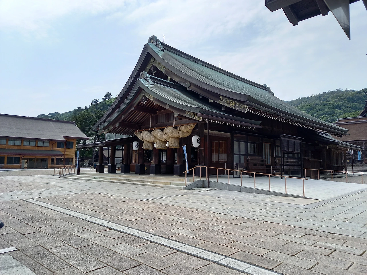 이즈모타이샤는 일본에서도 유명한 신사 중 하나다. 이른바 '쿠니유즈리(国譲り)' 신화의 배경이 된 곳이다. 간략하게 설명하자면 다카미하라(천계)에는 신들이 살고 있었는데, 태양신 아마테라스 여신이 손자인 니니기를 지상으로 내려보내서 다스리게 하게끔 했다(이른바 '천손강림'). 당시 지상은 오오쿠니누시라는 신이 다스리고 있었는데, 니니기에게 양보하는 대신 큰 신사를 지어달라고 했다. 그리하여 오오쿠니누시를 모시는 이즈모타이샤가 세워졌다고 한다. 일설에 따르면 옛날에는 신사 본전의 높이가 50m나 되었다고도 전해진다. 이즈모 왕조에서 야마토(大和) 왕조(현재의 나라(奈良) 현)로의 세력 교체를 상징하는 신화라고 한다.