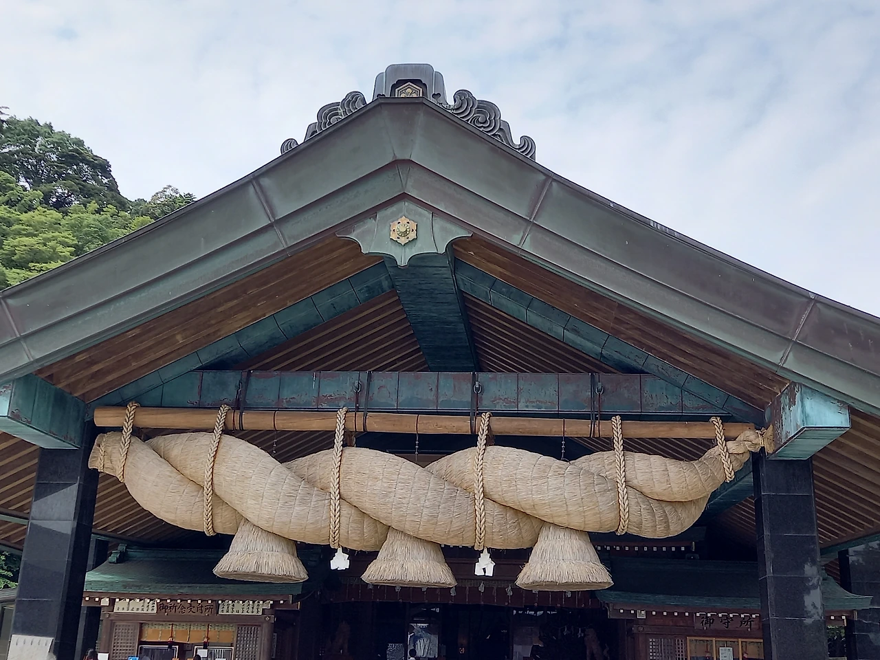 거대한 크기의 시메나와(しめ縄)가 특징적이다.