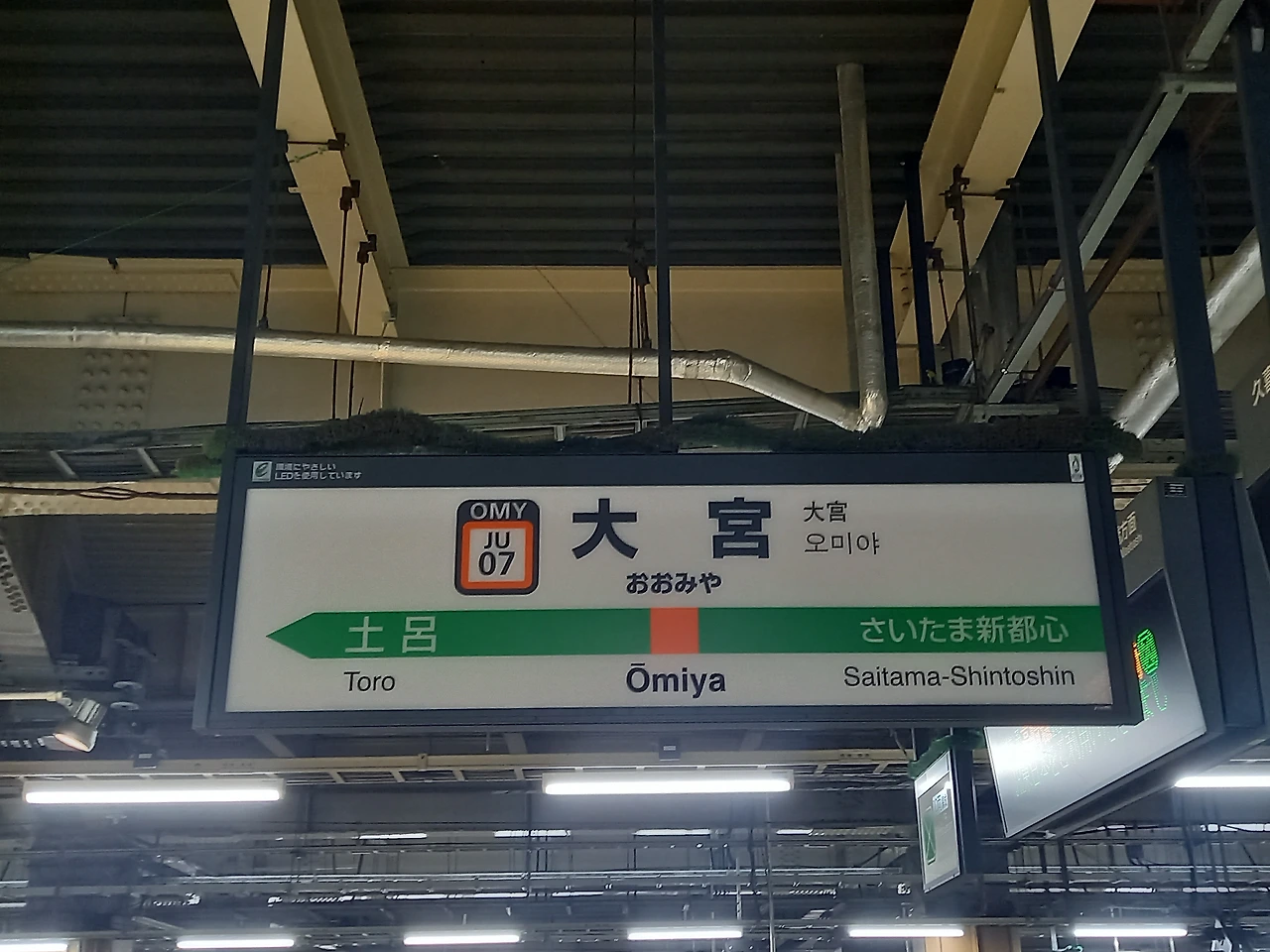 신주쿠에서 사이타마현 오미야(大宮) 도착. 도쿄 북쪽의 베드타운 오미야는 군마현 다카사키(高崎)로 향하는 다카사키선과 도치기현 우츠노미야(宇都宮)로 향하는 우츠노미야선의 분기점이기도 하다. 사실 현재는 신주쿠에서 우츠노미야 방면으로 가는 열차를 골라 타면 굳이 오미야에서 갈아타지 않아도 되지만, 타카키의 여정을 충실히 따르기 위해 오미야 역에 내려서 갈아탔다.