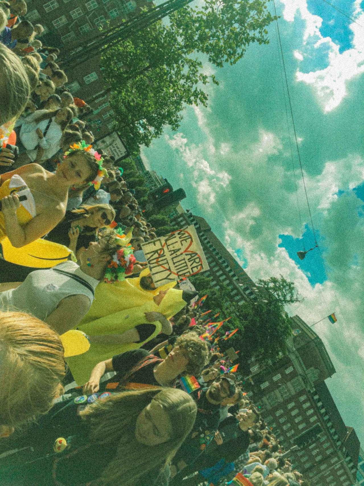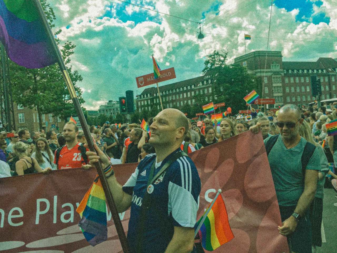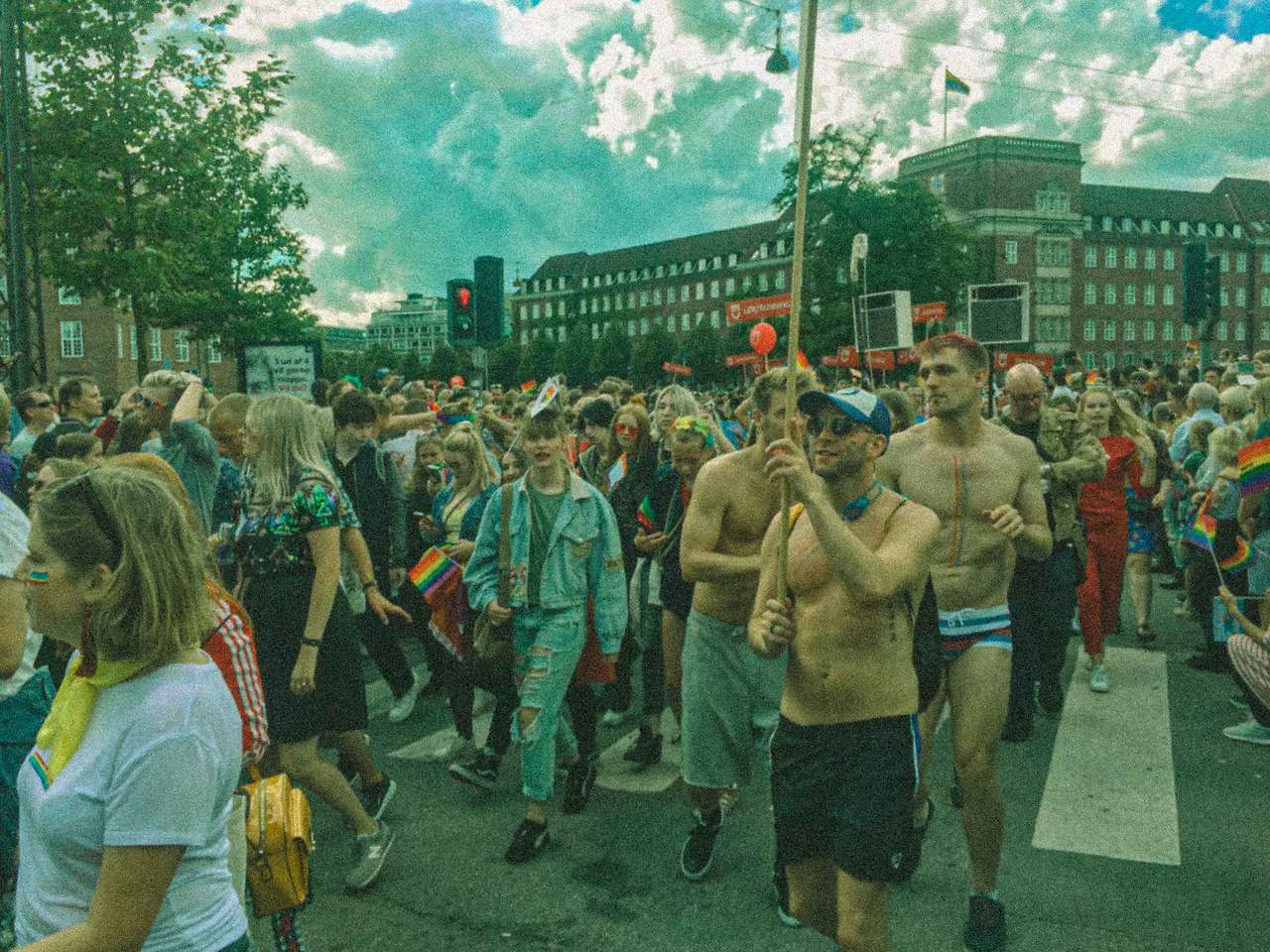 배정받은 침대에서 사진을 정리하고 다시 나가기 위해 가운을 챙겨 입었다. 나와 함께 방을 쓰는 룸메이트는 두 명이었고, 대화 중 퀴어 축제가 열리고 있어서 외출을 하려고 한다고 말했다. 그들도 함께 가도 되겠냐고 물었기에 함께 준비해서 나가기로 했다. 우리는 걸어서 코펜하겐 시청에 도착 후 각자 방식으로 축제를 즐기기로 했다. 나는 카메라를 꺼내어 무지개로 물든 코펜하겐을 기록했다.