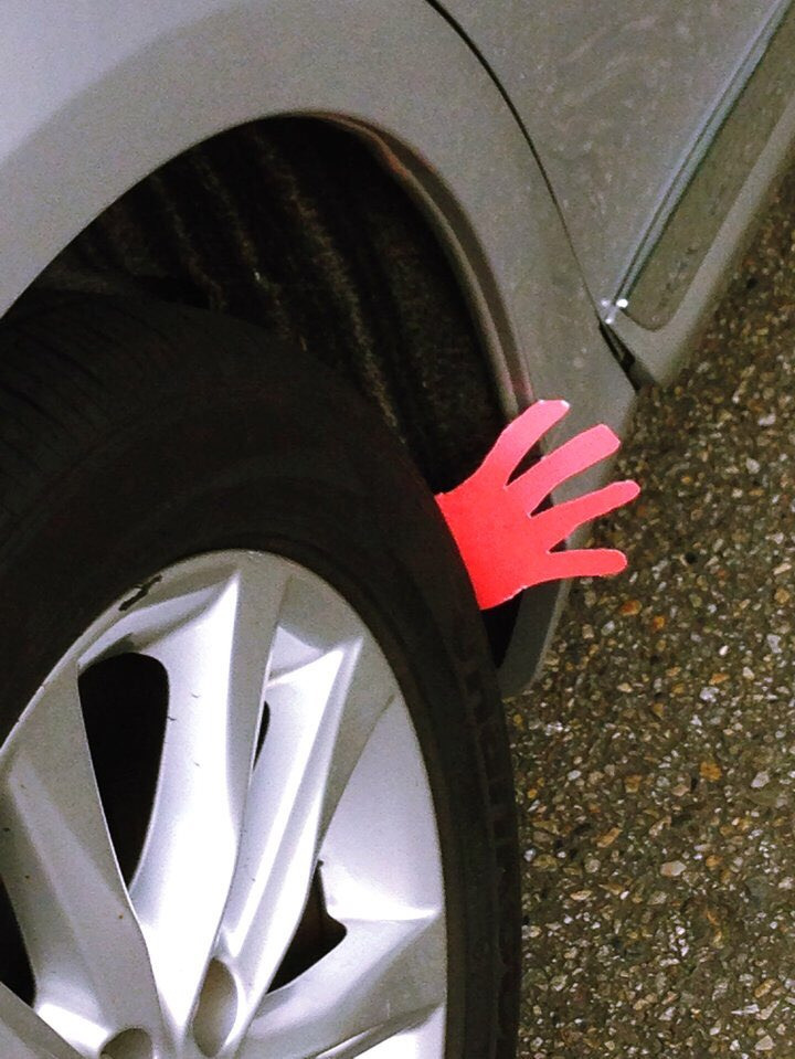 가까이 다가가서 보니 어린아이의 손이 차 뒷바퀴에 끼여 비명을 지르고 있었다. ㅎㅎㅎ