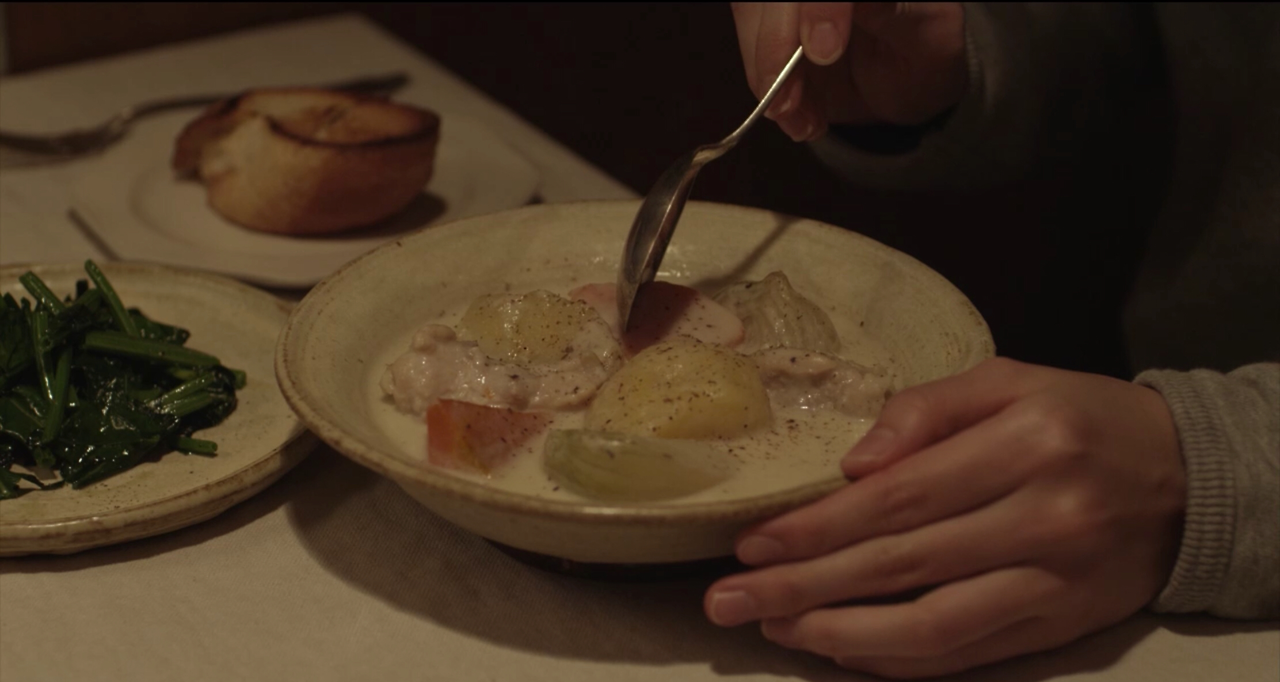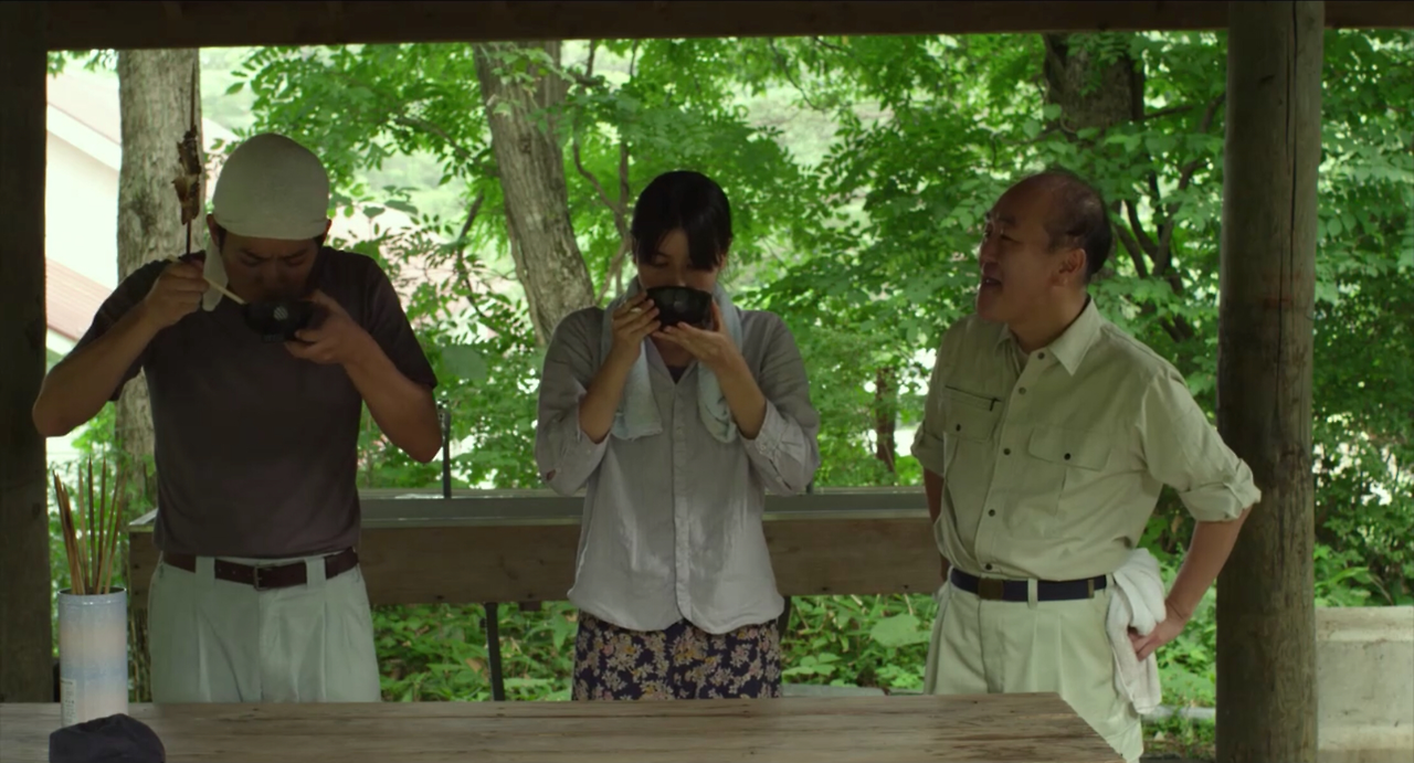 이 영화의 전체적인 분위기가 고요하고 차분해서 주인공 혼자서 재료를 가져와 요리를 하는 장면을 주구장창 보면 영화가 끝나는 듯한 느낌이지만, 알고보면 의외로 사람들이 복작거리는 영화다. 과거 회상 장면에서도 물론, 현재에서도 주변 인물들이 계속해서 등장한다. 지금까지는 친구 두 명과 마을 주민들, 엄마와 옛 애인이 등장했다. 의식하지 못한 사이에 우린 주인공 이치코가 살아오면서 관계를 맺게 된 사람들을 함께 만나본 것이다.