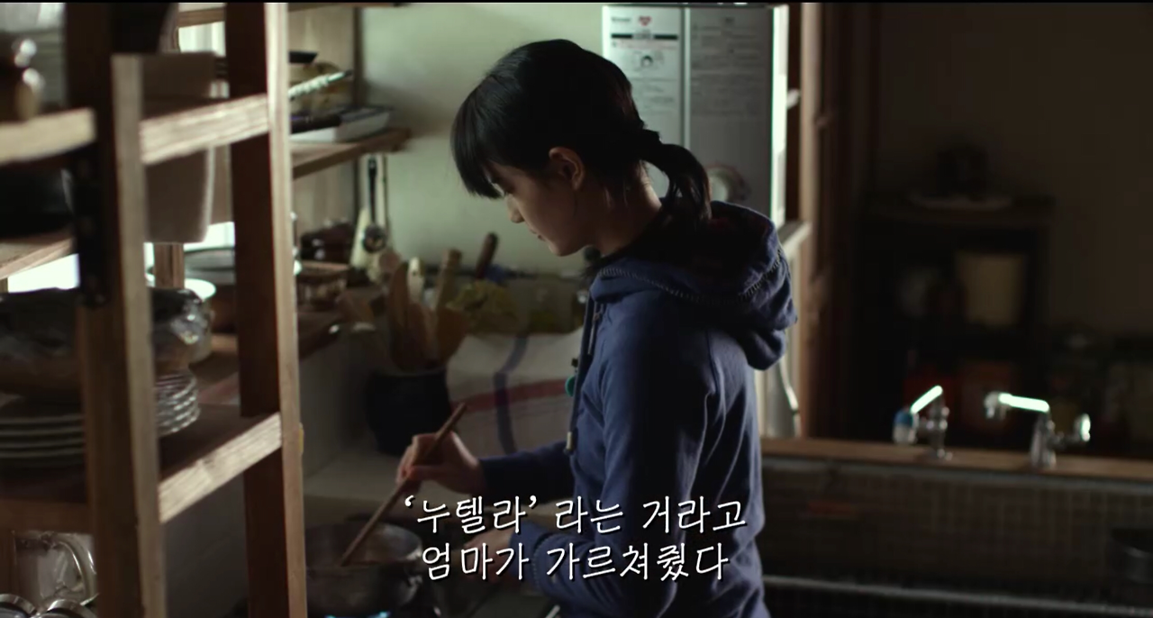 주인공의 이야기를 궁금해하는 관객들이 유심히 지켜봐야할 중요한 인물은 바로, 과거 회상 때마다 자주 등장하는 그녀의 엄마다. 주인공의 엄마는 어느 날 갑자기 집에서 떠났다. 그러나 첫 번째 영화에서는 이 부분보다는 엄마와 얽힌 일상적인 에피소드를 많이 다룬다. 예를 들어, 엄마가 집에서 요리해내던 많은 음식들이 사실은 그 집 안에서 탄생한 고유의 음식이 아니었고 시중에 파는 것들을 다른 식으로 만들었던 것이었다든지, 말도 안 되는 이유를 붙여 그 의미를 설명한다든지 하는 것들. (ㅎㅎㅎ 엄마 너무 귀엽다.) 우리는 주인공의 시점을 통해 그녀의 엄마에 대해 같이 생각하게 된다. 첫 번째 영화에서는 그동안의 엄마의 모습을 보게 되고, 엄마의 음식에 들어간 정성을 눈치채기 시작하고, 엄마가 떠난 이유가 대체 무엇이었는지를 아직은 알아채지 못한다.
