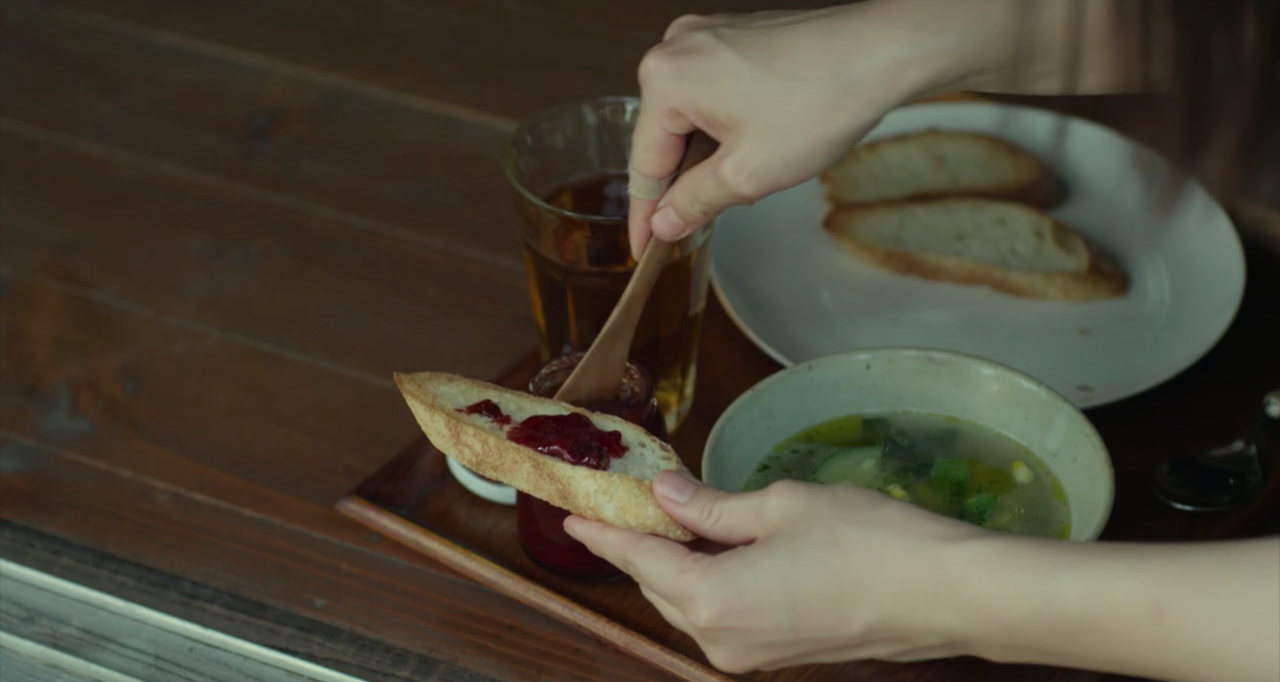 영화 <리틀 포레스트>가 음식만 계속 나오는 영화인 건 아니다. 굉장히 느리고 신중하지만, 분명 메시지가 차곡차곡 포함되어있다. 가령, 잼을 만드는 장면에서도 주인공의 내레이션이 깔린다.