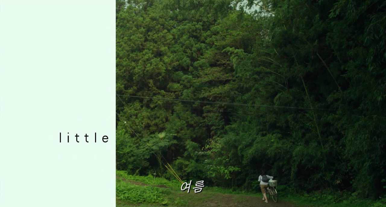 먼저 여름 편이다. 습기 많고 온도 높은 초록초록한 이곳, 코모리가 영화의 배경이다. ‘리틀 포레스트’라고 화면에 제목을 살포시 알려주고서 영화는 시작된다. 역시나 컷들이 너무 정갈하다. 화면이 넘어가는 방식도 너무 좋다. 화려한 기법은 없지만, 간결하고 차분하다. 일본 음식처럼.