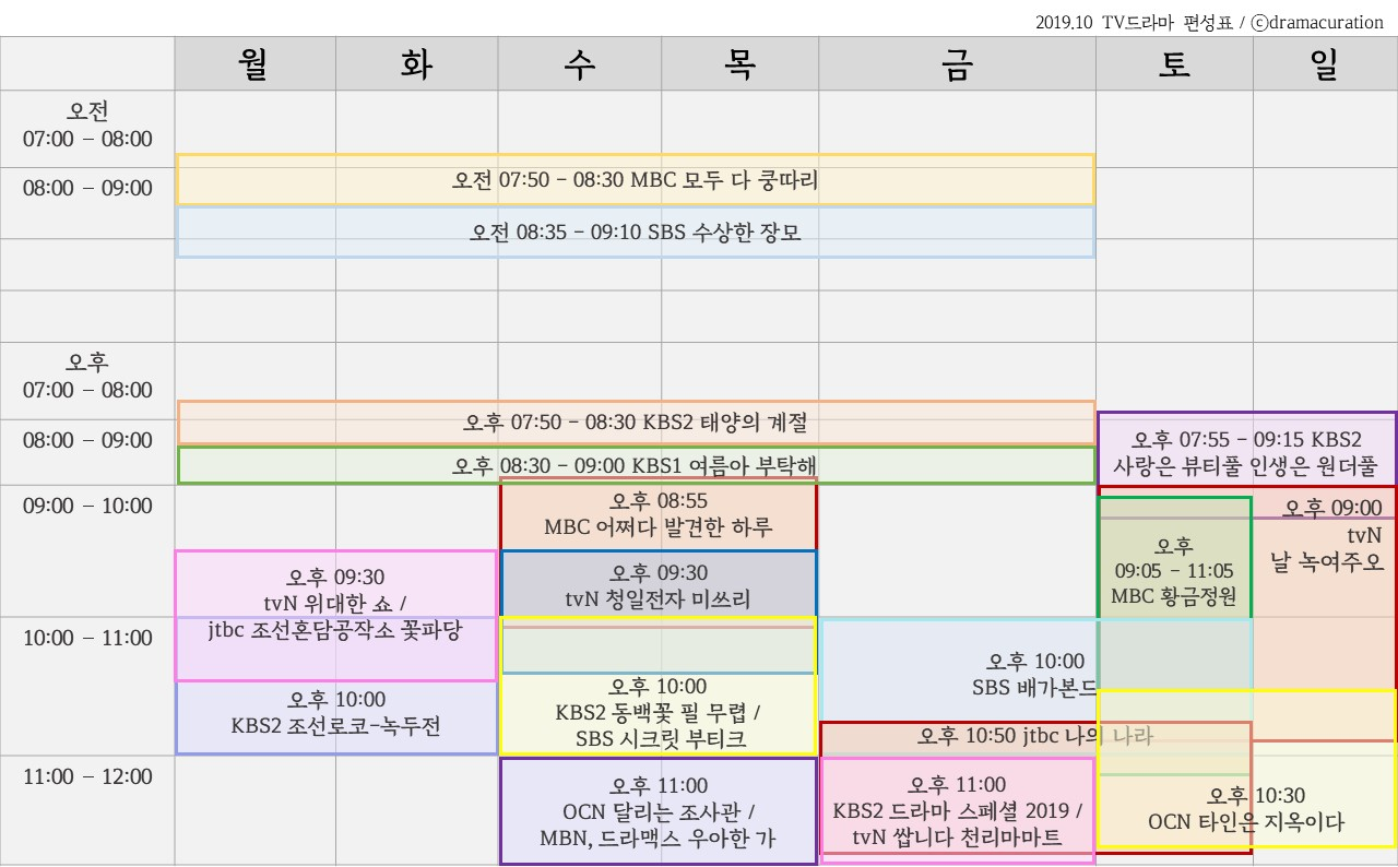 2019.10. TV 드라마 편성표 (update)
