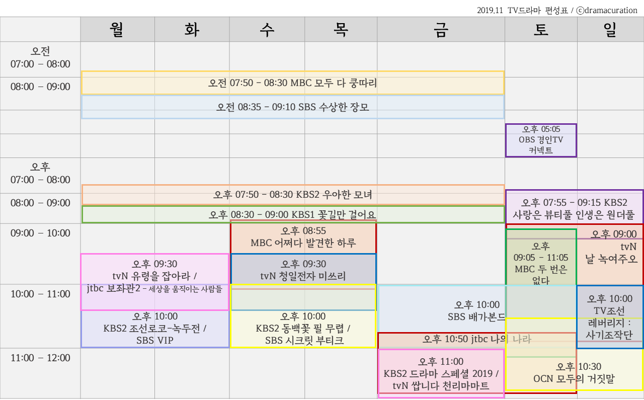 2019.11 TV드라마 편성표