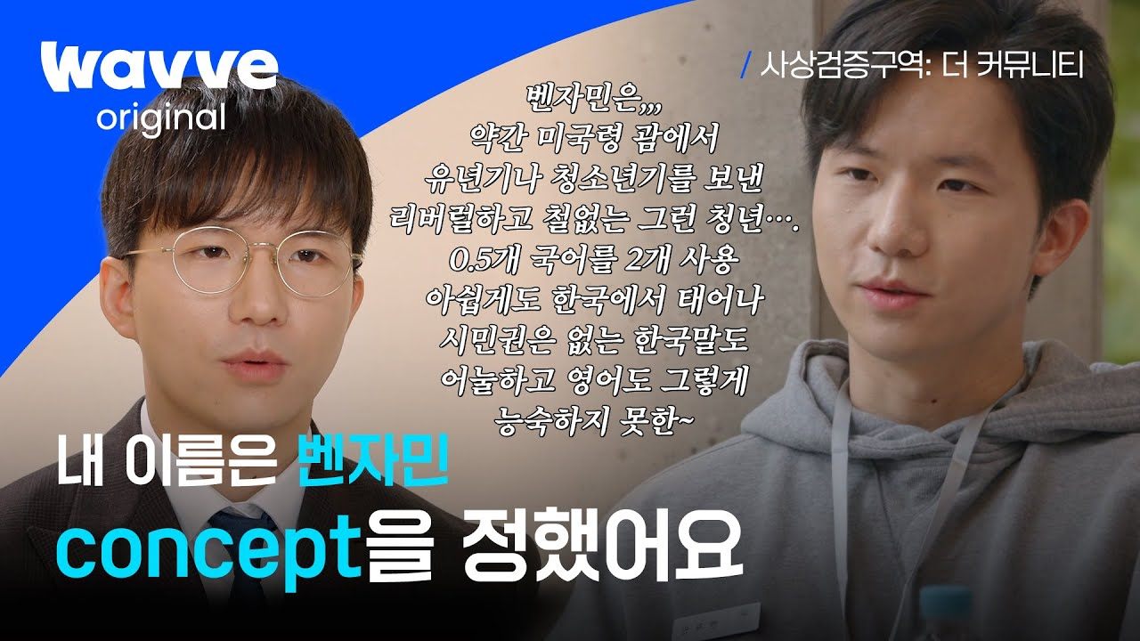 벤자민에 대한 이야기를 꺼내지 않을 수가 없다. 벤자민은 이 프로그램의 재미에 가장 큰 공을 세운 사람이었기 때문이다. '불순분자'로서의 역할을 제대로 수행한 벤자민은 아마 이 프로그램에서 가장 똑똑한 사람이 아닐까? 대원외고-서울대 경영-서울대 로스쿨, 대한민국 토박이 문과 엘리트인 이 사람이 안경을 벗어던지고 어눌하게 말하는 교포를 연기하는 모습 자체만으로도 너무 웃겨죽겠는데, 벤자민의 프로그램 내 활약을 보면 묘한 쾌감을 느낄 수 있다. (찐 교포 마이클과 영어로 대화하는 장면 뒤에 찐 벤자민의 인터뷰 씬이 교차될 때마다 너무 웃겼다. 하지만 벤자민의 영어 실력은 상당하다. 찾아보니 대원외고 출신에, 영문학과를 복전했다고.. 갓생이다 정말.)