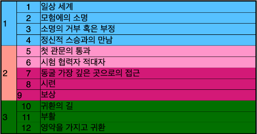 크리스토퍼 보글리라는 스토리 컨설턴트는 독자들이 만족할만한 결말을 위해 주인공들이 꼭 거쳐야 하는 여정을 다음과 같이 소개합니다.
