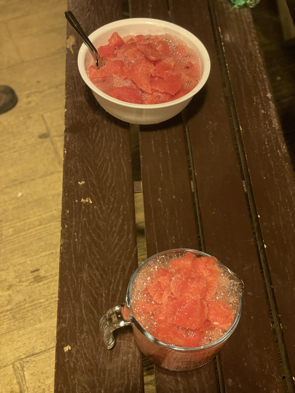 알베르게 앞 밴치에서 화채를 만들어 더위를 달래 보려고도 했지만