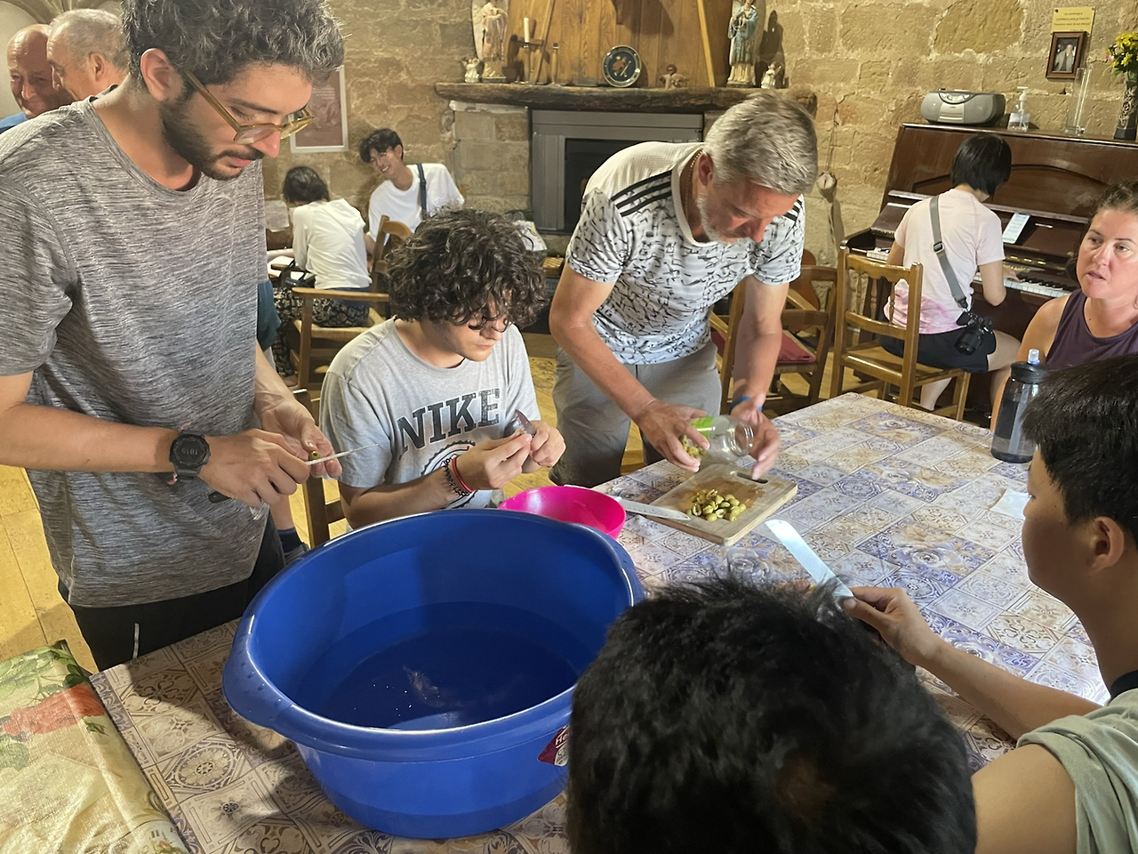 이곳에서 하루를 머무르는 순례자들은 다 같이 모여 재료 손질부터