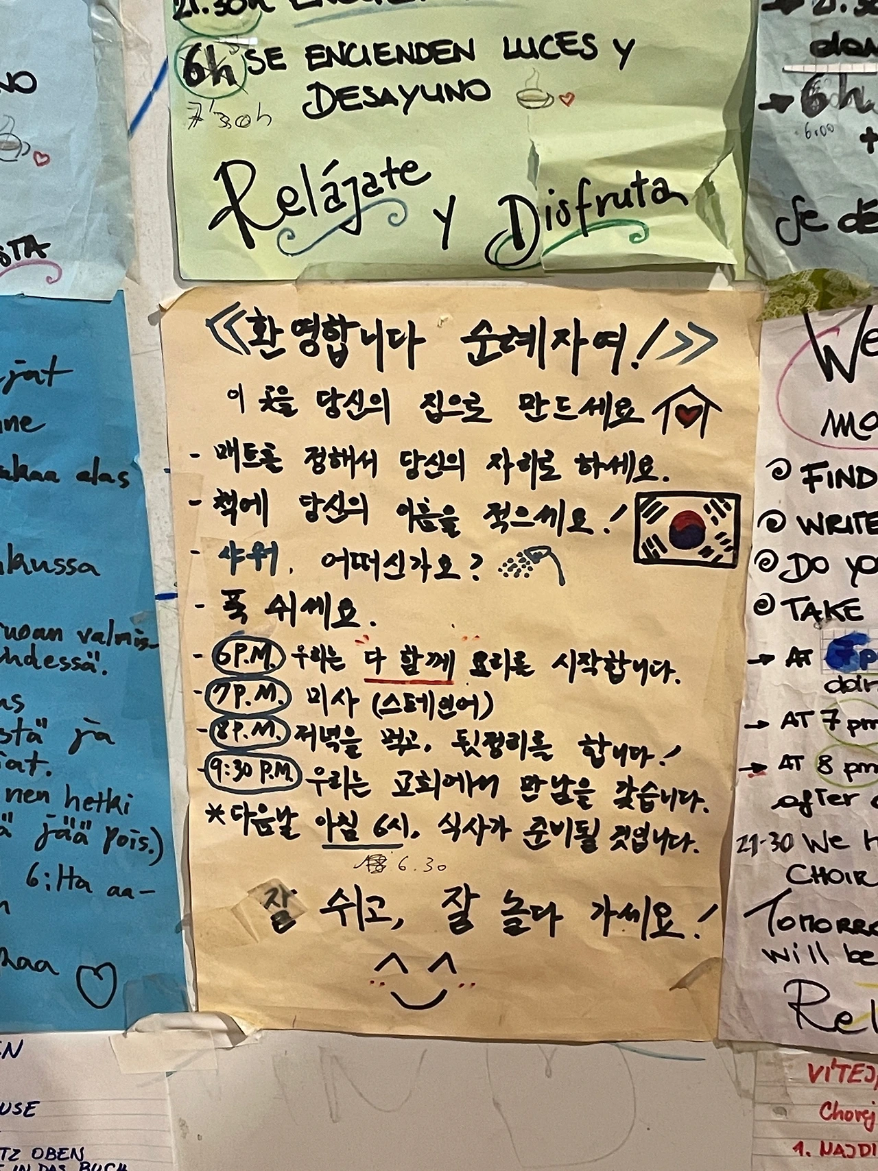 알베르게 주의사항을 붙여놓은 게시판은
