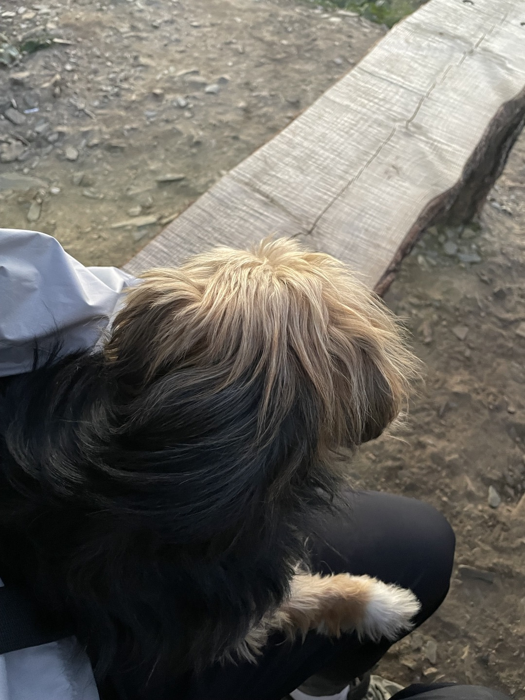 어느새 강아지는 자신의 앞 발을 나의 허벅지 위에 올린 채