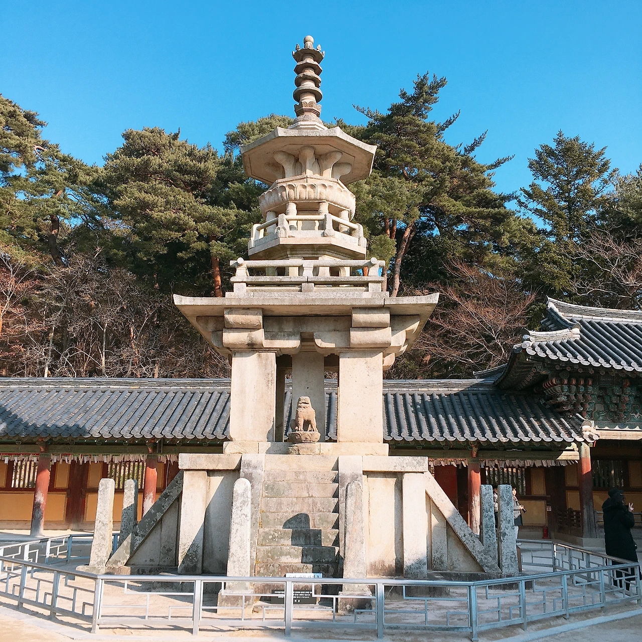 둘째 날은 조금 떨어져 있는 불국사와 석굴암에 가기로 했다. 시내에서 차로 약 30분 정도 떨어져 있다. 불국사의 입장료는 5000원이다. 입장 후 길을 따라 걸어가다 보면 고즈넉한 풍경에 한번 반한다. 천왕문 구경도 하고 들어가다 보면 다보탑이 보인다. 그리고 그 웅장함에 두 번 반한다. 문화재의 위엄에 다시 한번 놀라며 한참 그 속에 푹 빠지다 보면 옆에 석가탑이 보인다. 그리고 세 번 반한다.