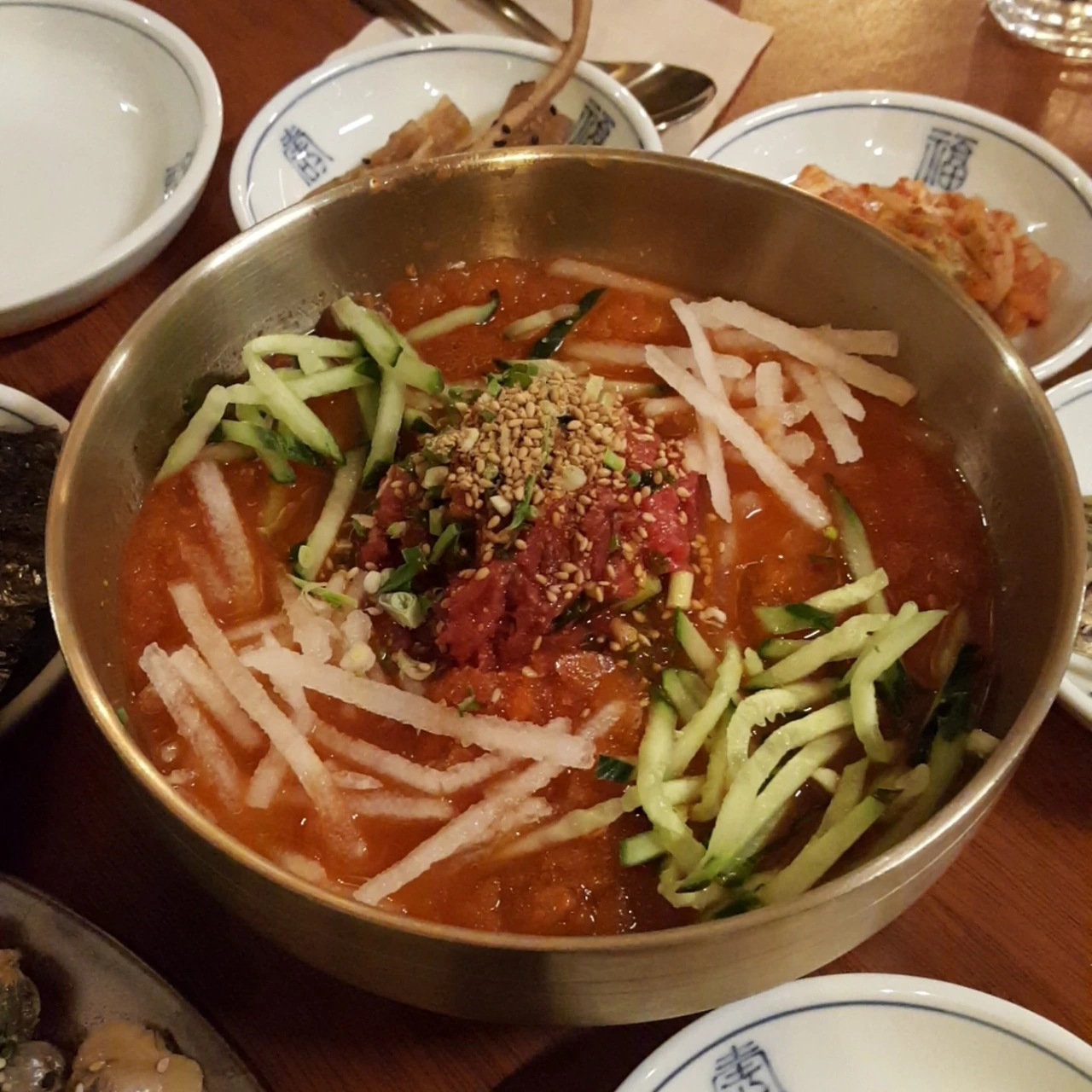 한우 물회는 함양집이 유명해서 가고 싶었는데 일정상 가지 못했다. 대신 향화정에서 한우 물회를 팔길래 먹어봤는데 정말 맛있었다. 꼬막비빔밥 말고 한우 물회 2그릇과 다른 메뉴를 시킬걸 후회했을 정도였다. 한우 물회를 시키면 소면과 밥이 같이 나온다. 특히 국물이 맛있기 때문에 소면과 밥을 말아먹으면 굉장히 맛있다.