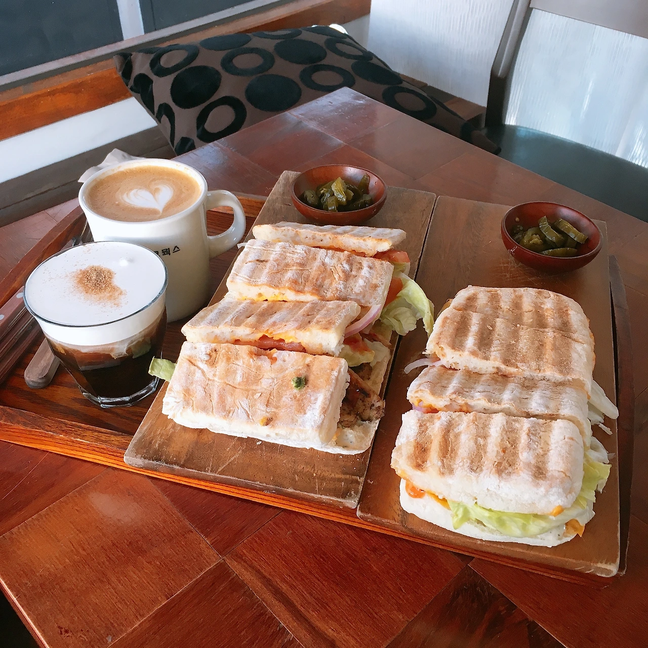 샌드위치 2개와 커피를 시켰는데 음식이 나오는데 시간이 꽤 걸려 20분 정도만에 받을 수 있었다. 샌드위치는 양이 꽤 많은 편이었고 맛도 괜찮았다. 나는 화이트벨벳을 시켰는데 콜드브루 위에 올라가 있는 크림이 맛있었다. 친구는 카페라테를 시켰는데 맛이 센 편이라고 하니 참고하면 좋을 것 같다.