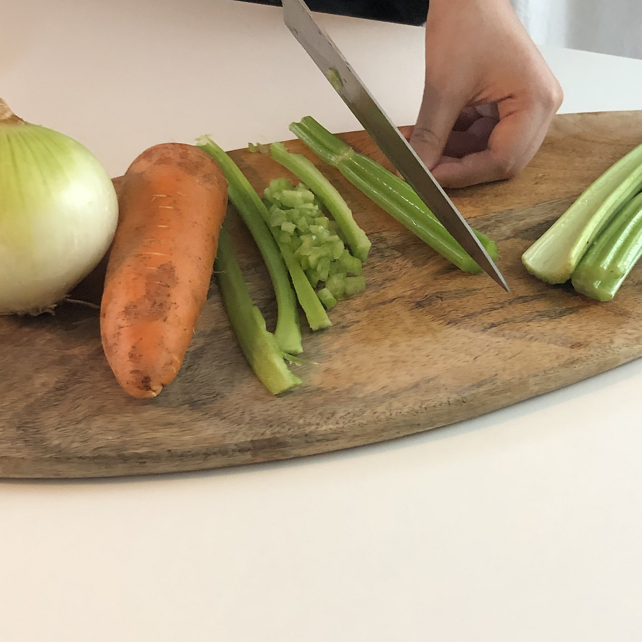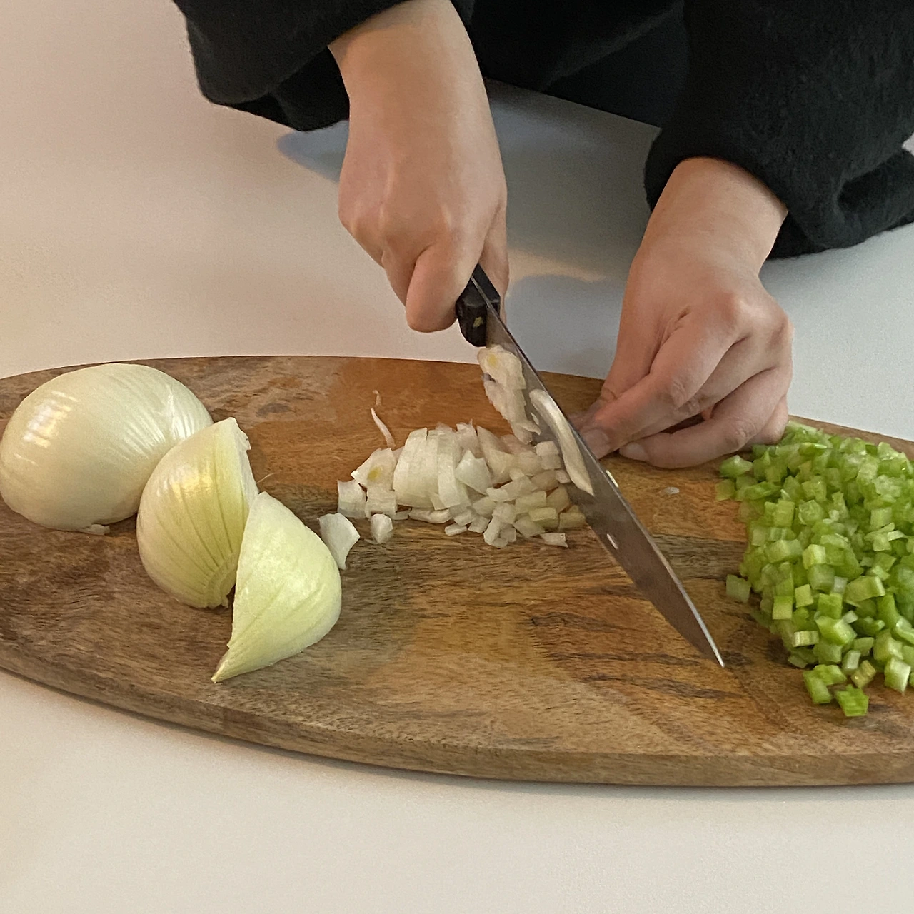 자 첫 번째로 우리가 해야 할 일은 바로 야채를 무지막지하게 다져주는 거다.