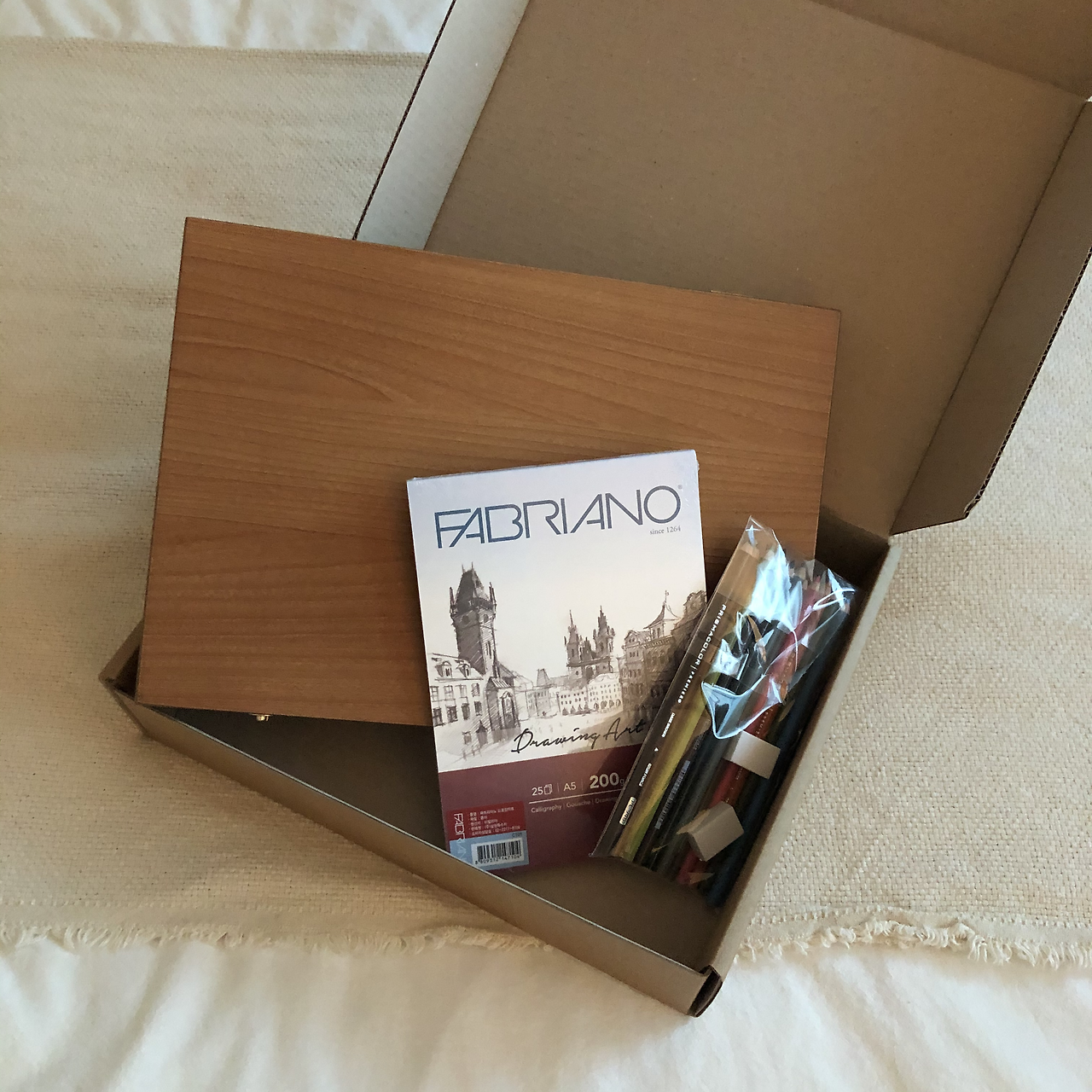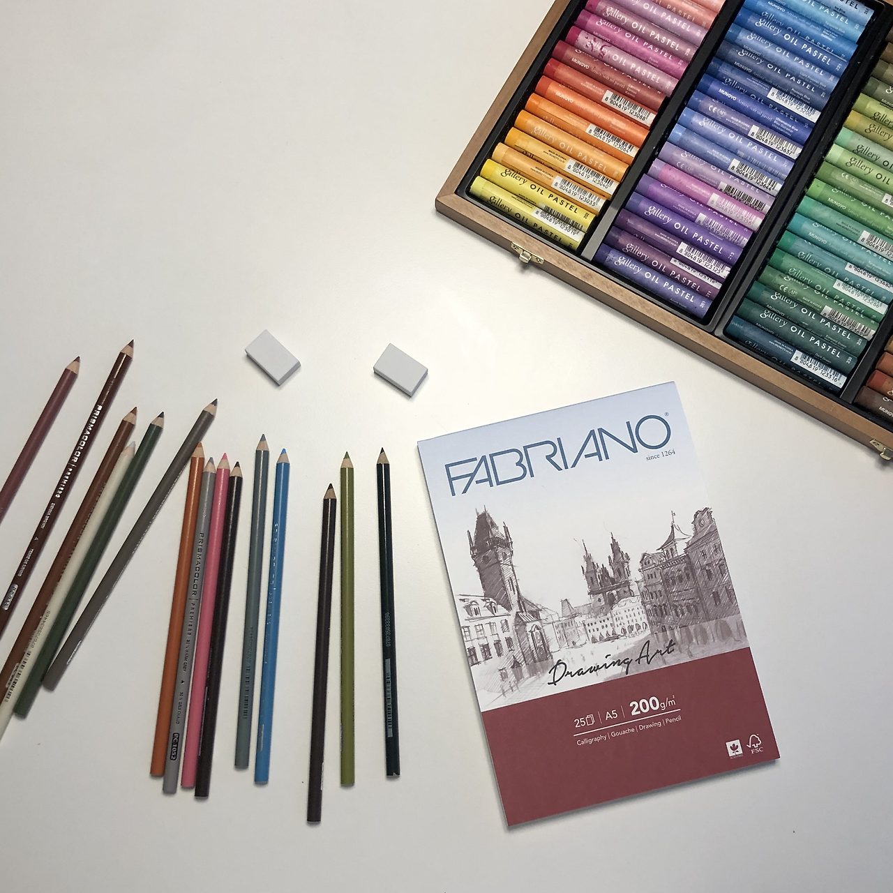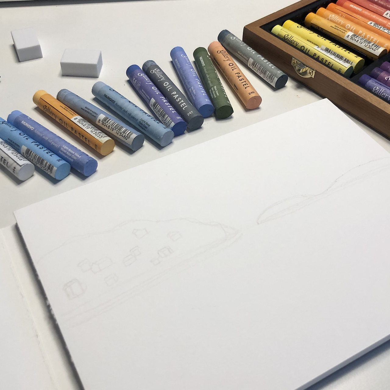 문교 오일파스텔, 캔버스, 색연필 몇 자루 그리고 지우개 두 개가 들어있었다.
