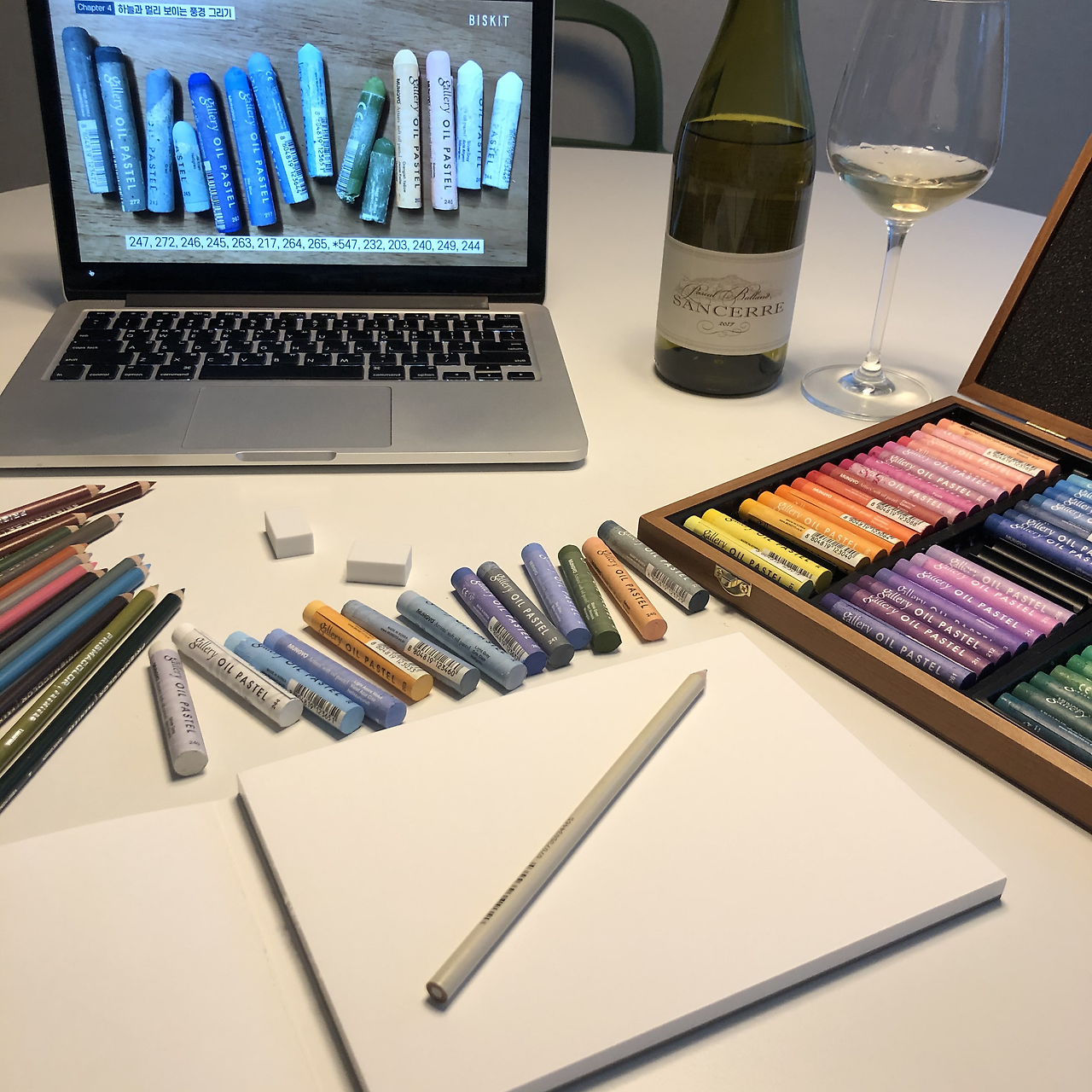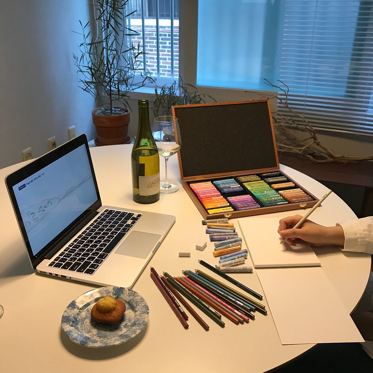참고로 어른의 좋은 점은, 음주 수업이 가능하다는 점이다. 날 좋은 토요일 점심, 와인 한 잔과 그림이라... 몽마르트르 언덕의 화가들이 이런 기분인가.