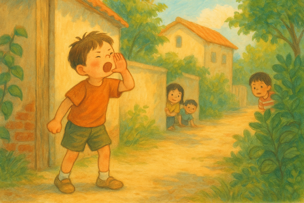 술래는 그 아이 하나를 찾지 못해 동네를 세 바퀴는 돌고, 마침내 지쳐 외쳤다.