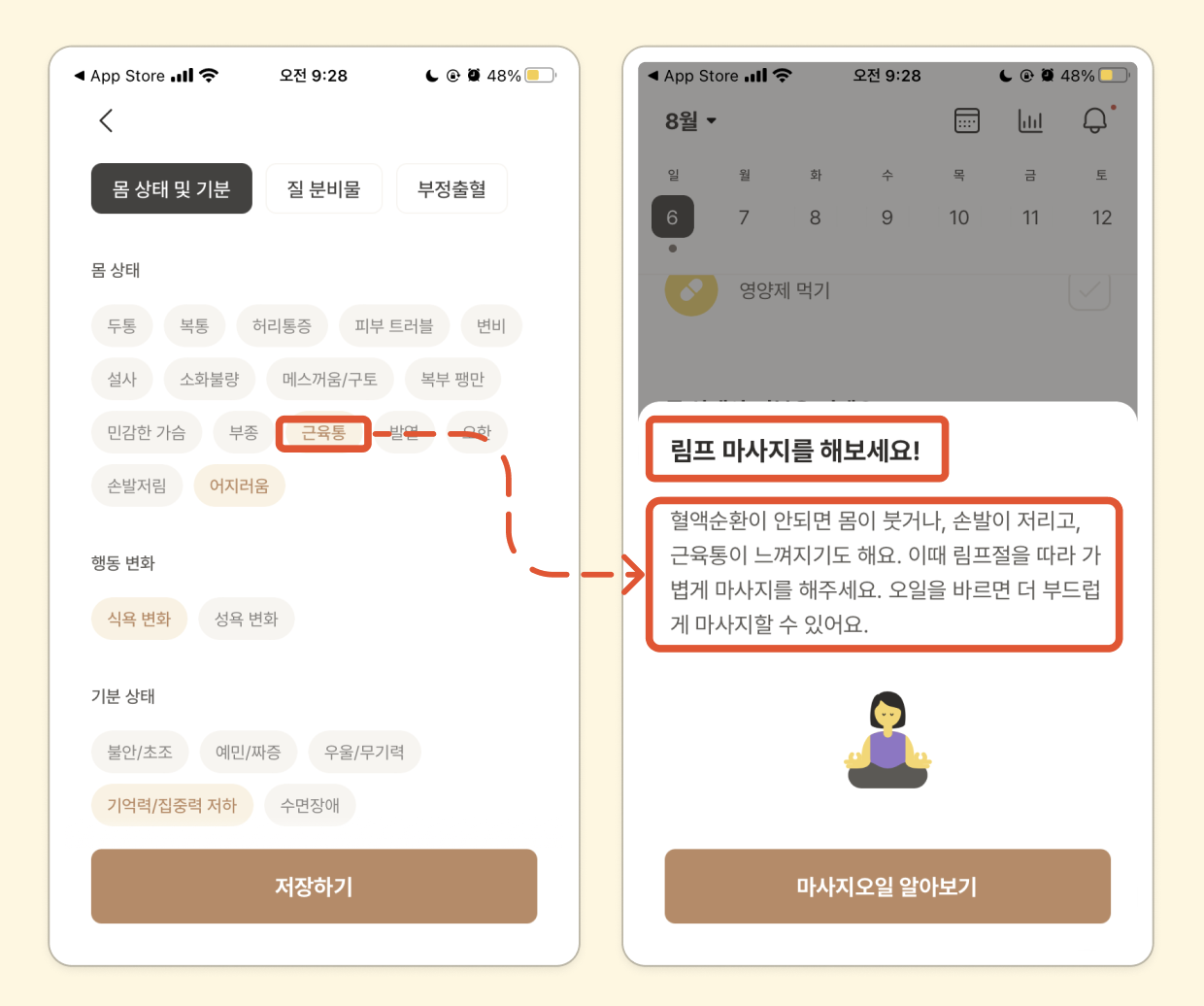 입력하자마자, 바로 화면에 저장해 보여준다면 유저는 그날의 하루를 잘 마무리했다고 느낀다. 그동안 기록했던 기분과 메모들도 다시 훑어보며 기록한 데이터를 트래킹 할 수 있다.