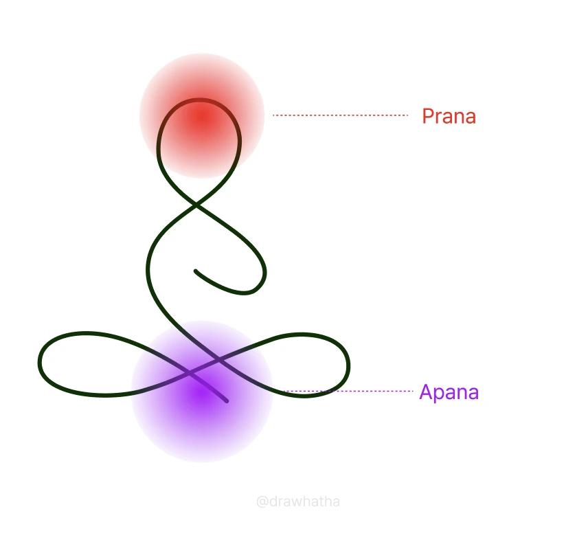 반대로 아파나는 날숨이 끝날 때 가장 크며 초승달의 에너지에 해당합니다.