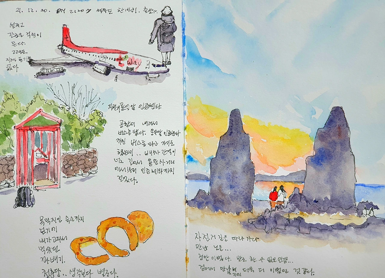 펜션에서 하루의 피로를 씻어내고, 미지근한 전복죽을 나눠 먹었다. 그날 찍은 사진을 보고, 나는 그림을 그리고, 딸은 일정을 정리를 한 다음 티브이를 켰다. 내가 좋아하는 싱어게인 2가 방송 중이었다.