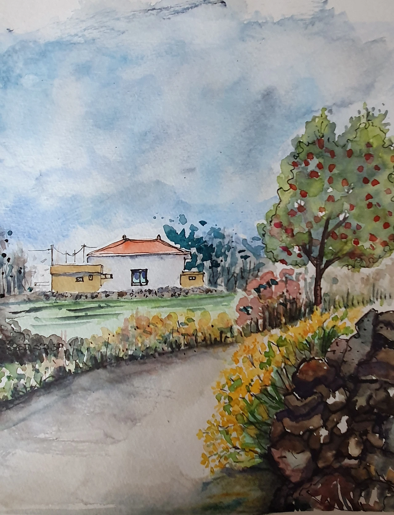 뒷걸음질로 걷는 것도 한계에 다다르자 마을로 들어갔다. 이름도 모르는 마을. 여행자인 우리는 마을 주민들의 삶이 잠깐이나마 궁금했다. 그러나 현무암 담 너머, 오렌지 지붕, 파란 지붕들에 사는 그들의 모습은 좀체 만날 수가 없었다. 그저 집 앞마당에 심어진 커다란 하귤을 보며 그들의 삶이 팍팍하지 않고 넉넉하리라. 왜냐면 어제 택시아저씨에게 하귤에 대해 여쭤보았더니 " 하귤은 보기와 달리 너무 써서 도저히 먹지 못해요."라고 했다. 제주출신인 딸의 대학친구도, " 먹진 못하지만 탐스럽게 생긴 과실이 예뻐서 한 두 그루 관상수로 심는다고" 했단다. 먹지 못하는 과실을 거의 집집마다 심었다는 것은 제주 사람들 마음은 아름다운 걸 볼 줄 아는 마음과 여유가 있는 것 같다.