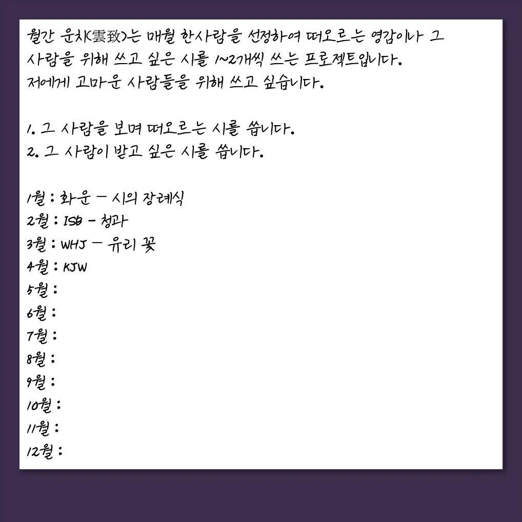 우연히 한 문장, 한 글자 주의 깊게 바라보았습니다. 그 우연이 제 삶에 길을 내어주었습니다. 제 글이 구름처럼 언제든 볼 수 있지만 깊이 있고 위로가 될 수 있으면 좋겠습니다