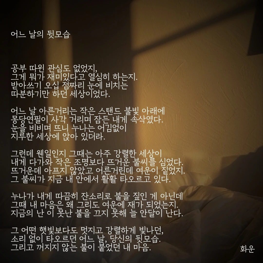 소리 없이 타오르던 어느 날, 당신의 뒷모습.