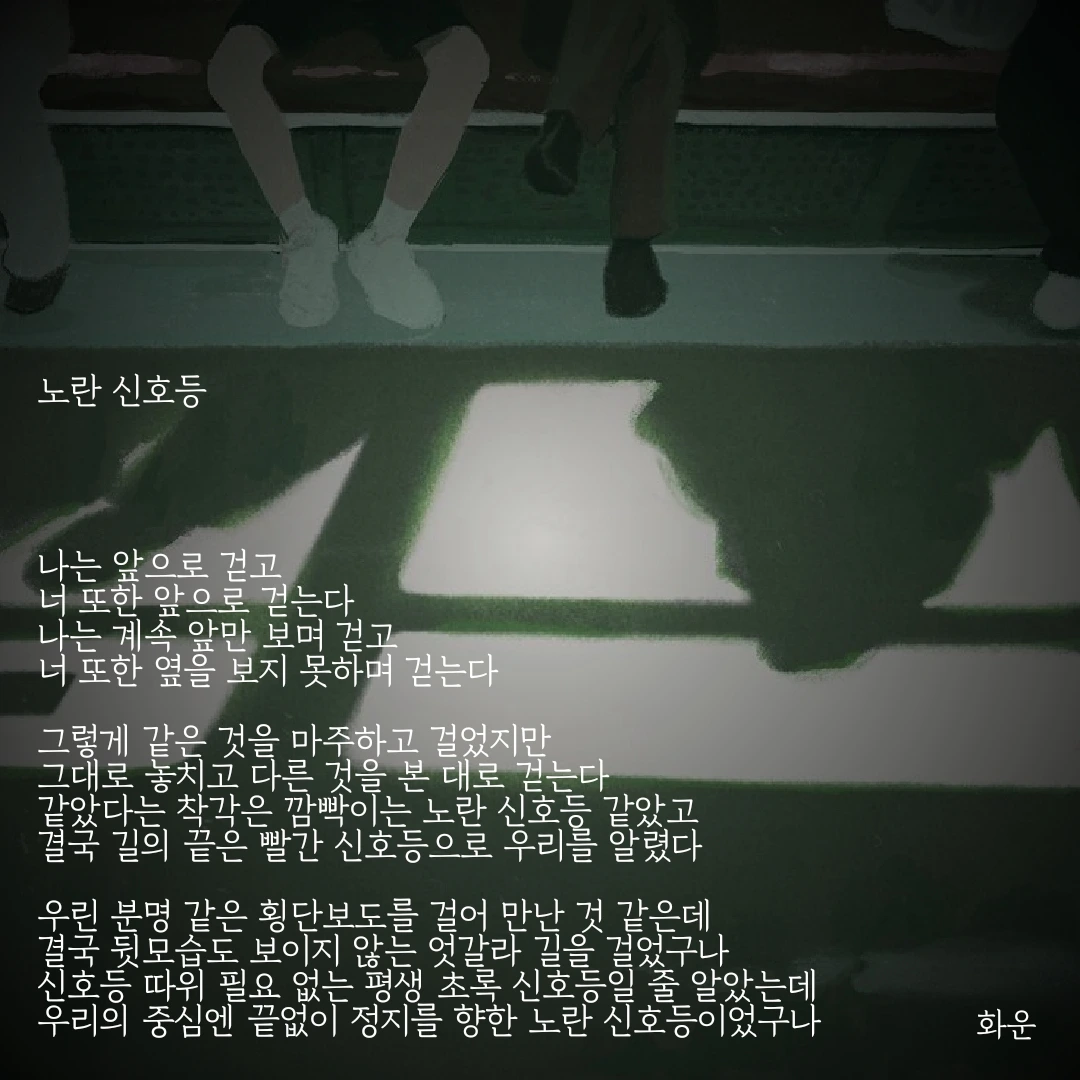 우리의 중심엔 끝없이 정지를 향한 노란 신호등이었구나
