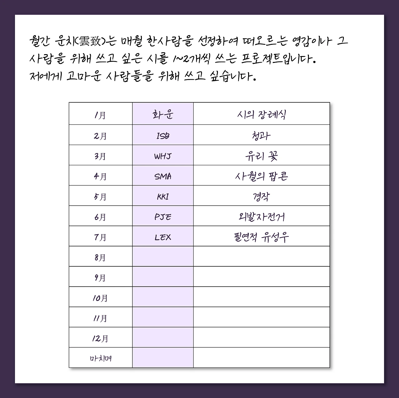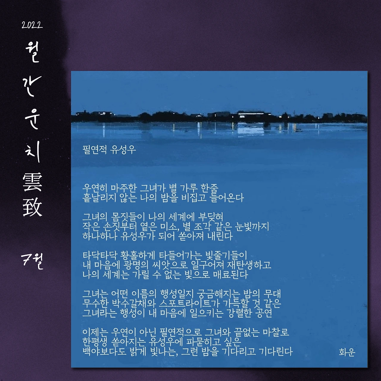 우연히 한 문장, 한 글자 주의 깊게 바라보았습니다. 그 우연이 제 삶에 길을 내어주었습니다. 제 글이 구름처럼 언제든 볼 수 있지만 깊이 있고 위로가 될 수 있으면 좋겠습니다