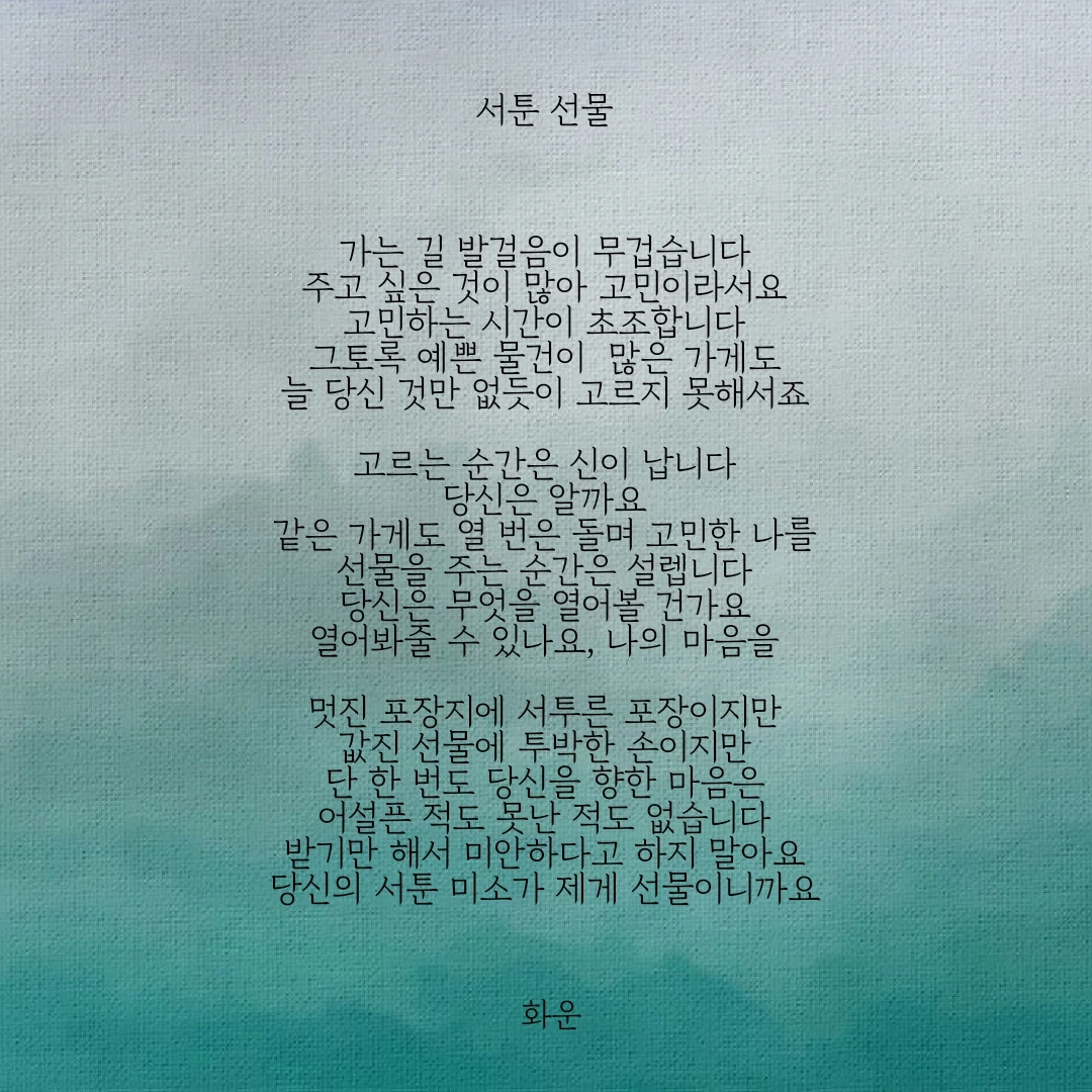 우연히 한 문장, 한 글자 주의 깊게 바라보았습니다. 그 우연이 제 삶에 길을 내어주었습니다. 제 글이 구름처럼 언제든 볼 수 있지만 깊이 있고 위로가 될 수 있으면 좋겠습니다