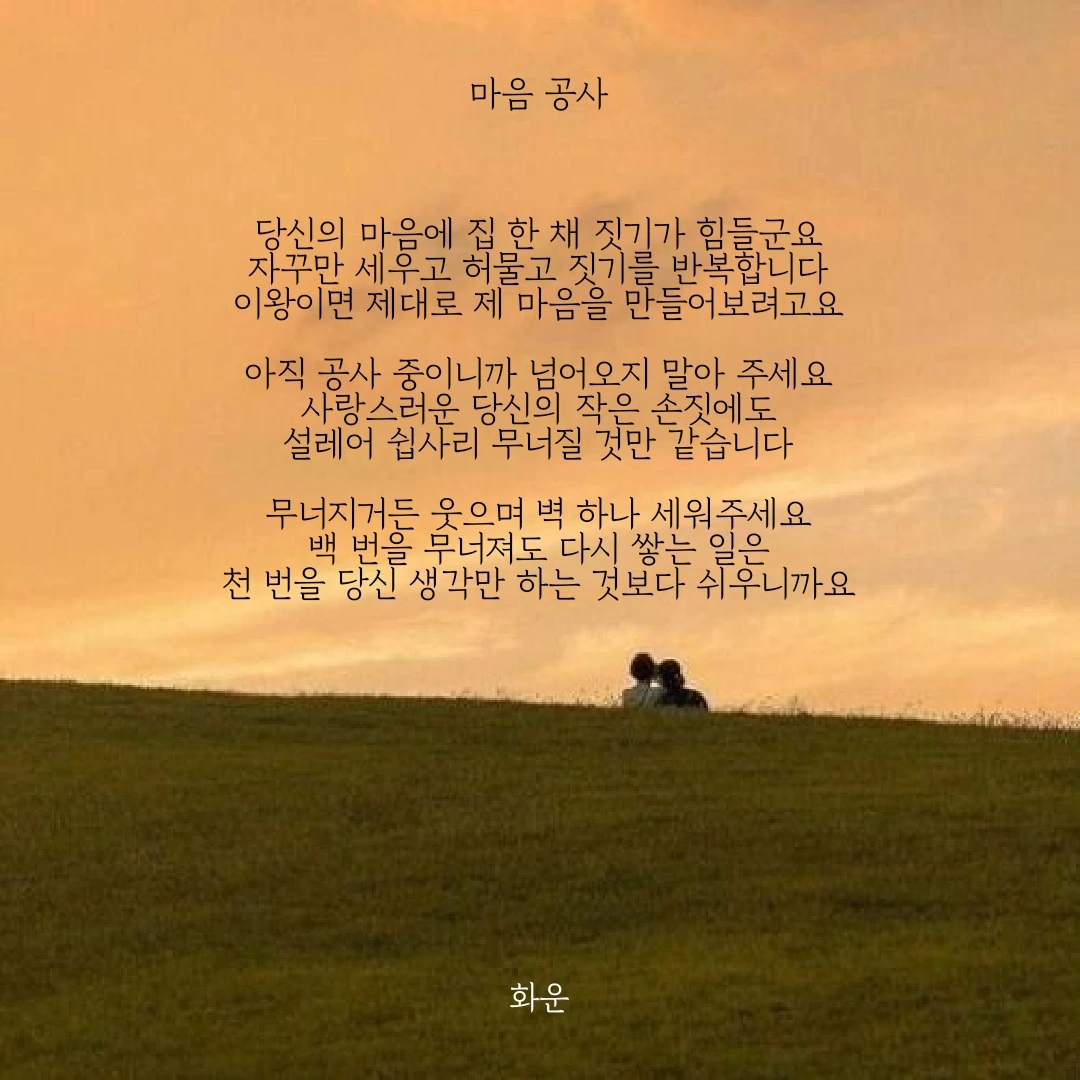 무너지거든 웃으며 벽 하나 세워주세요