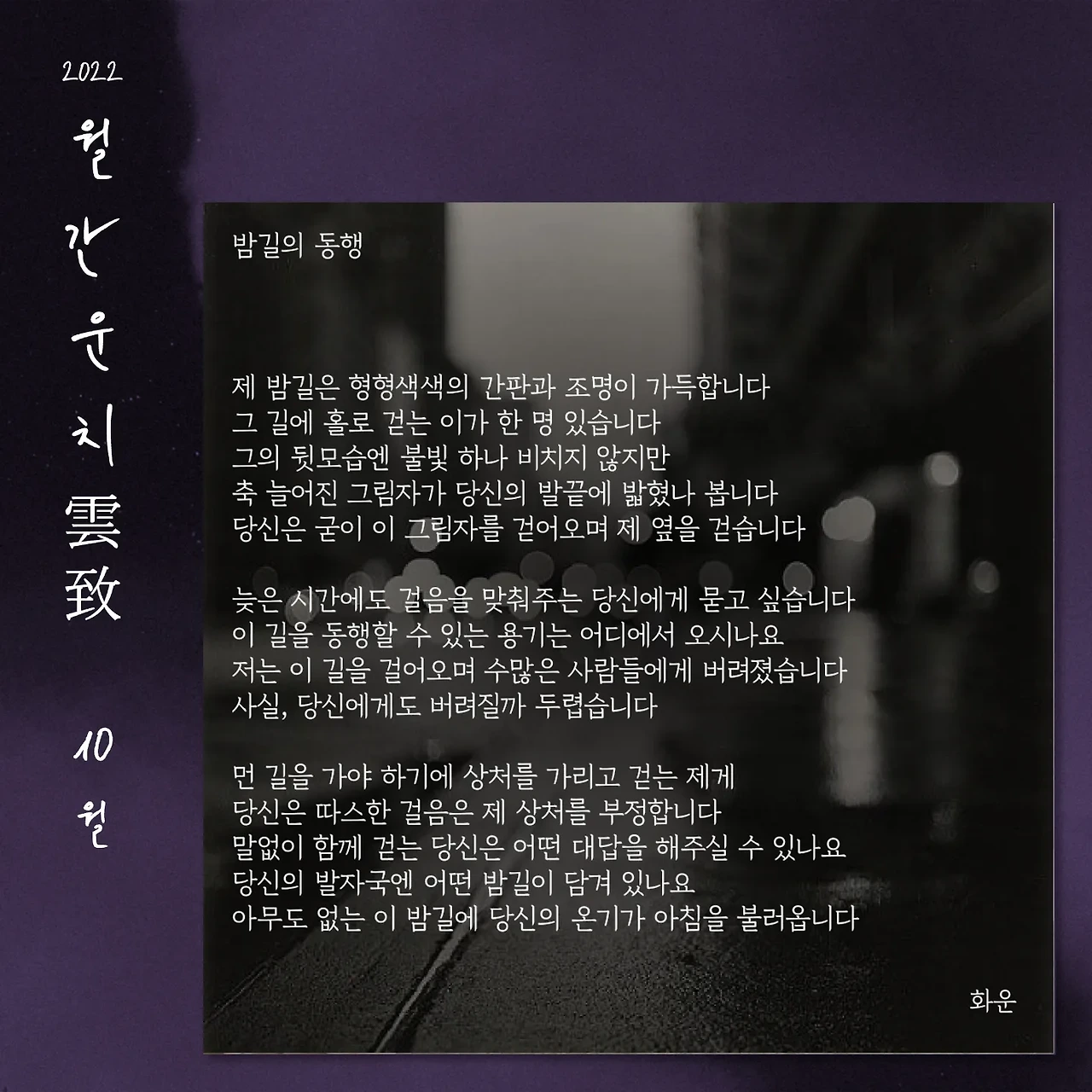 늦은 시간에도 걸음을 맞춰주는 당신에게 묻고 싶습니다