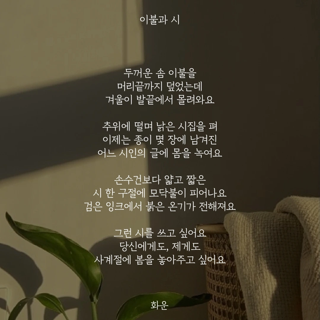 어느 시인의 글에 몸을 녹여요