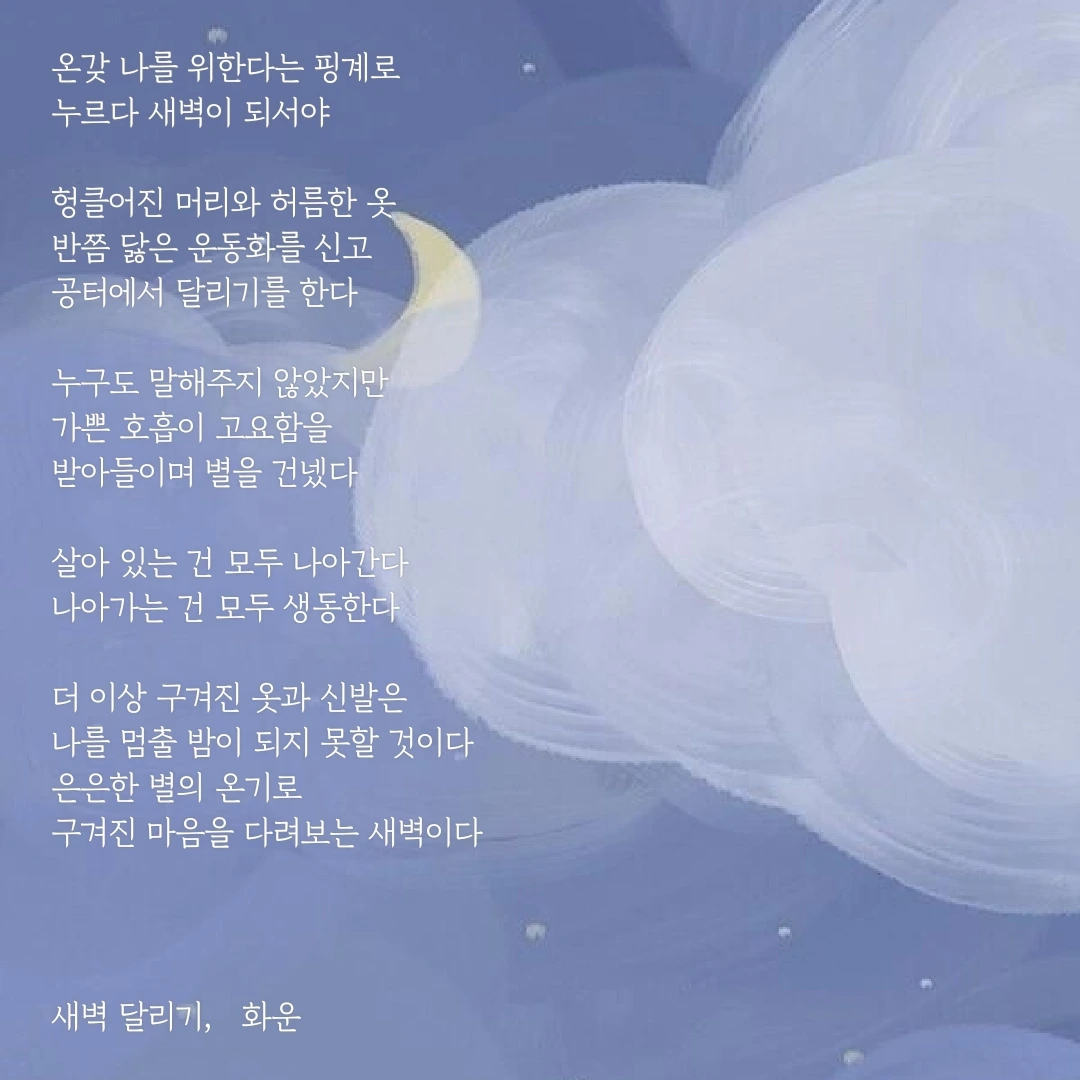 우연히 한 문장, 한 글자 주의 깊게 바라보았습니다. 그 우연이 제 삶에 길을 내어주었습니다. 제 글이 구름처럼 언제든 볼 수 있지만 깊이 있고 위로가 될 수 있으면 좋겠습니다