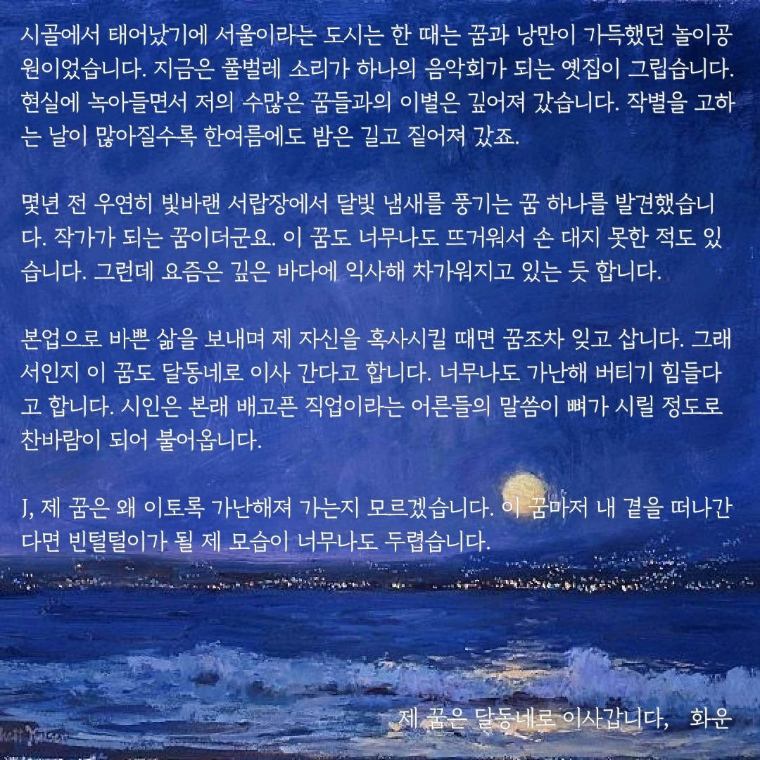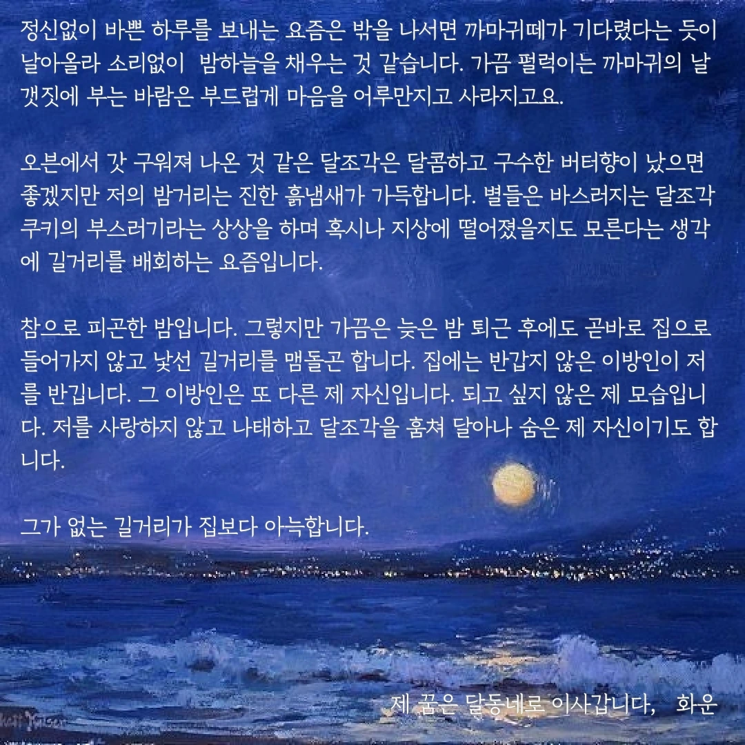 우연히 한 문장, 한 글자 주의 깊게 바라보았습니다. 그 우연이 제 삶에 길을 내어주었습니다. 제 글이 구름처럼 언제든 볼 수 있지만 깊이 있고 위로가 될 수 있으면 좋겠습니다